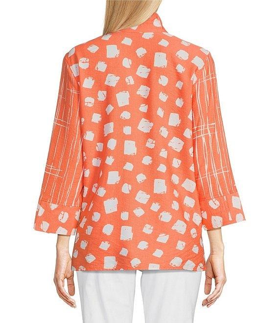 Ali Miles Printed Wire Collar 3/4 Sleeve Button-Front Tunic