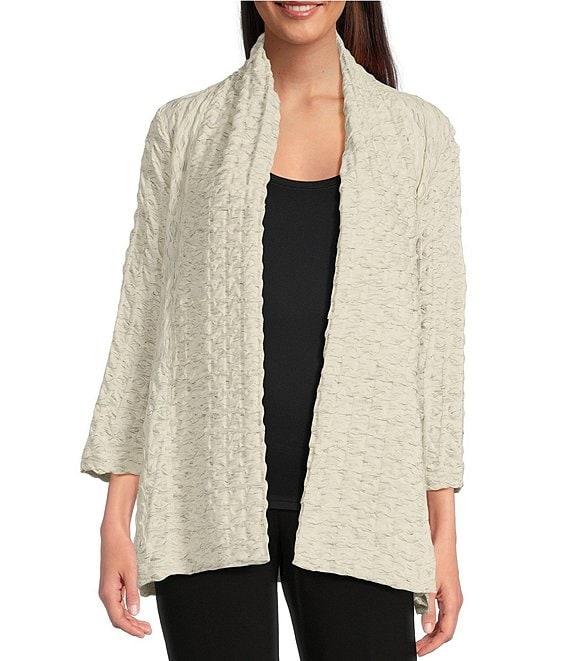 From Ali Miles, this cardigan features: textured knit fabrication open front neckline 3/4 sleeves two front pockets open front, no closure approx. 28" length cotton machine wash/tumble dry Imported.
