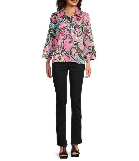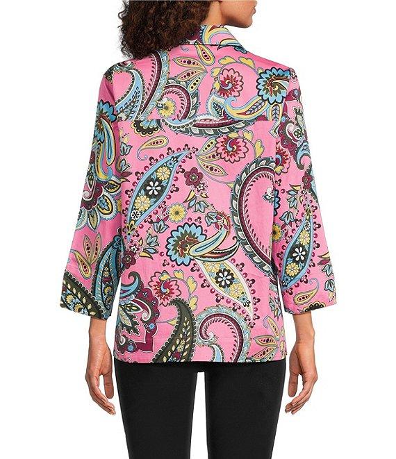 From Ali Miles, this tunic features: Woven fabrication Point collar 3/4 cuff sleeves Paisley multi print Slightly hi-low hem Partial button closure Approx. 26" center front length, 27" center back length Cotton Machine wash/tumble dry Imported.