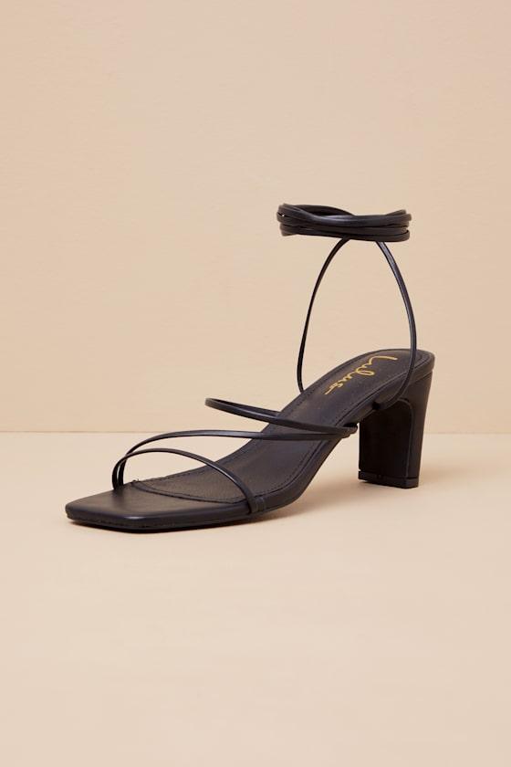 Get party-ready this season with the Lulus Aliah Black Lace-Up High Heel Sandals! These cute sandals feature a sleek faux leather composition that shapes a trendy, square-toe footbed with a strappy vamp atop a sturdy block heel. Long lace-up straps secure above the ankle to create a versatile look that pairs with anything in your closet!
