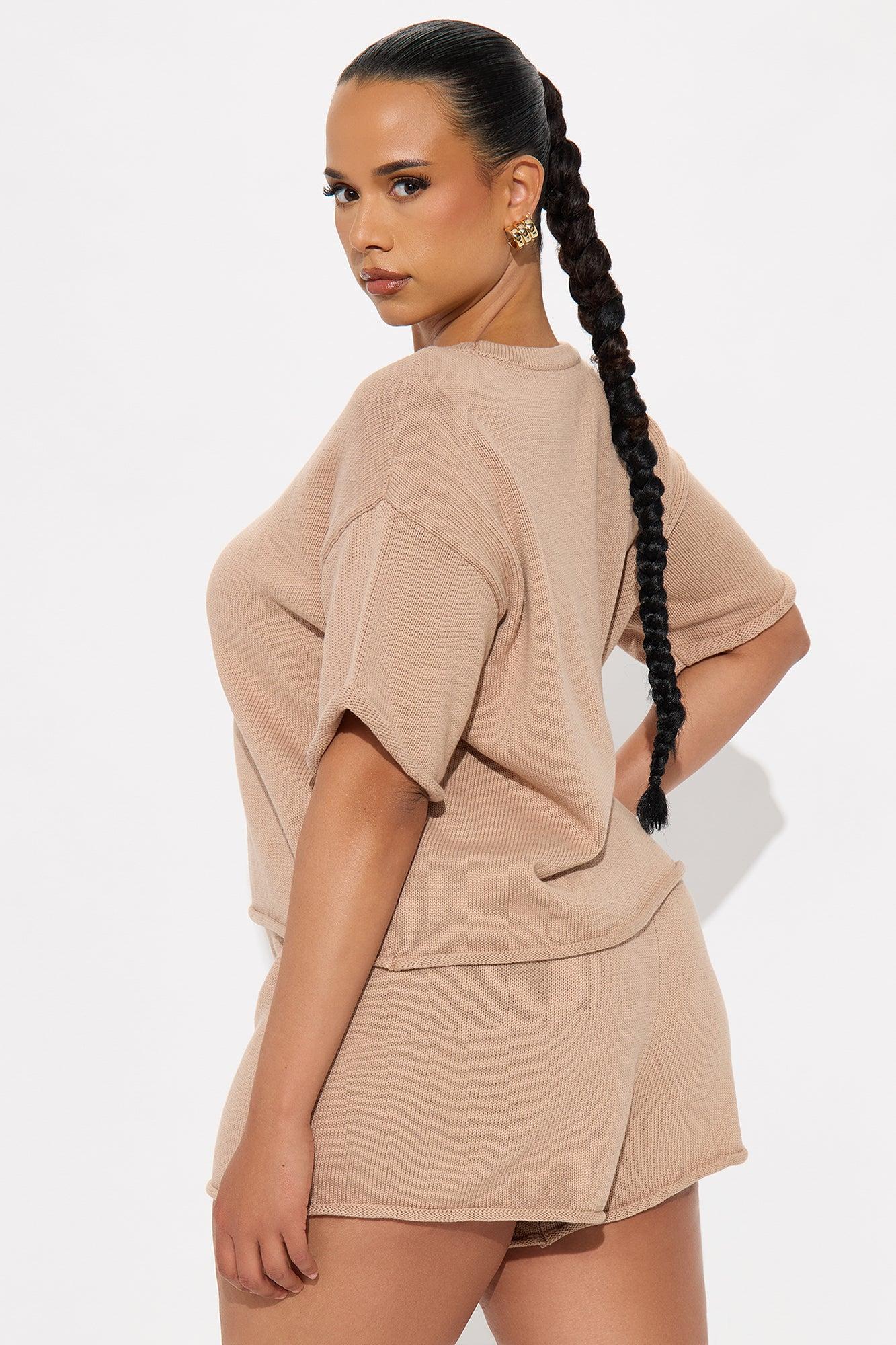 Alicia's Iconic Look Sweater Short Set - Taupe