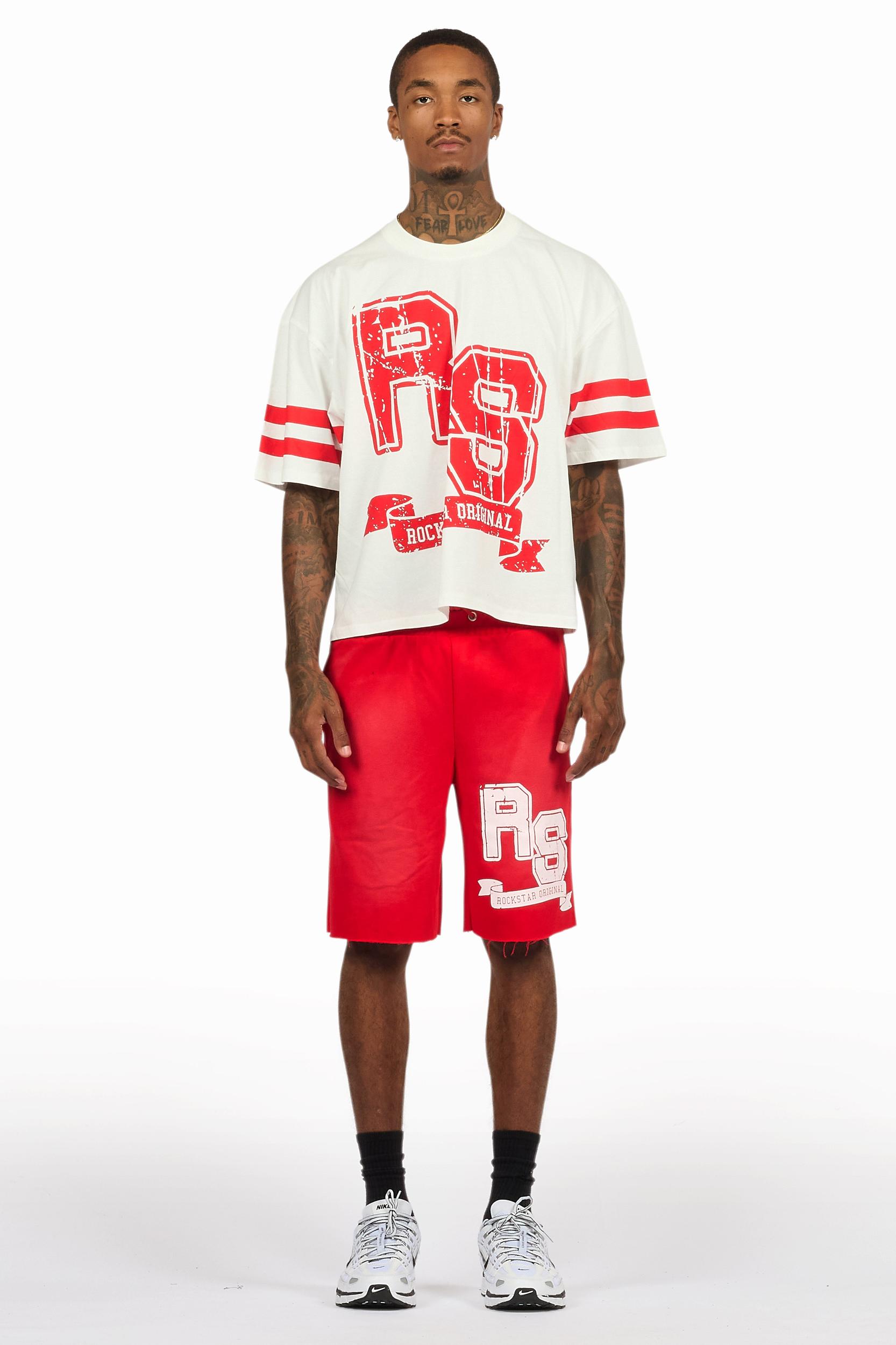 Alik White/Red Crop Boxy Tee Short Set Male Product Image