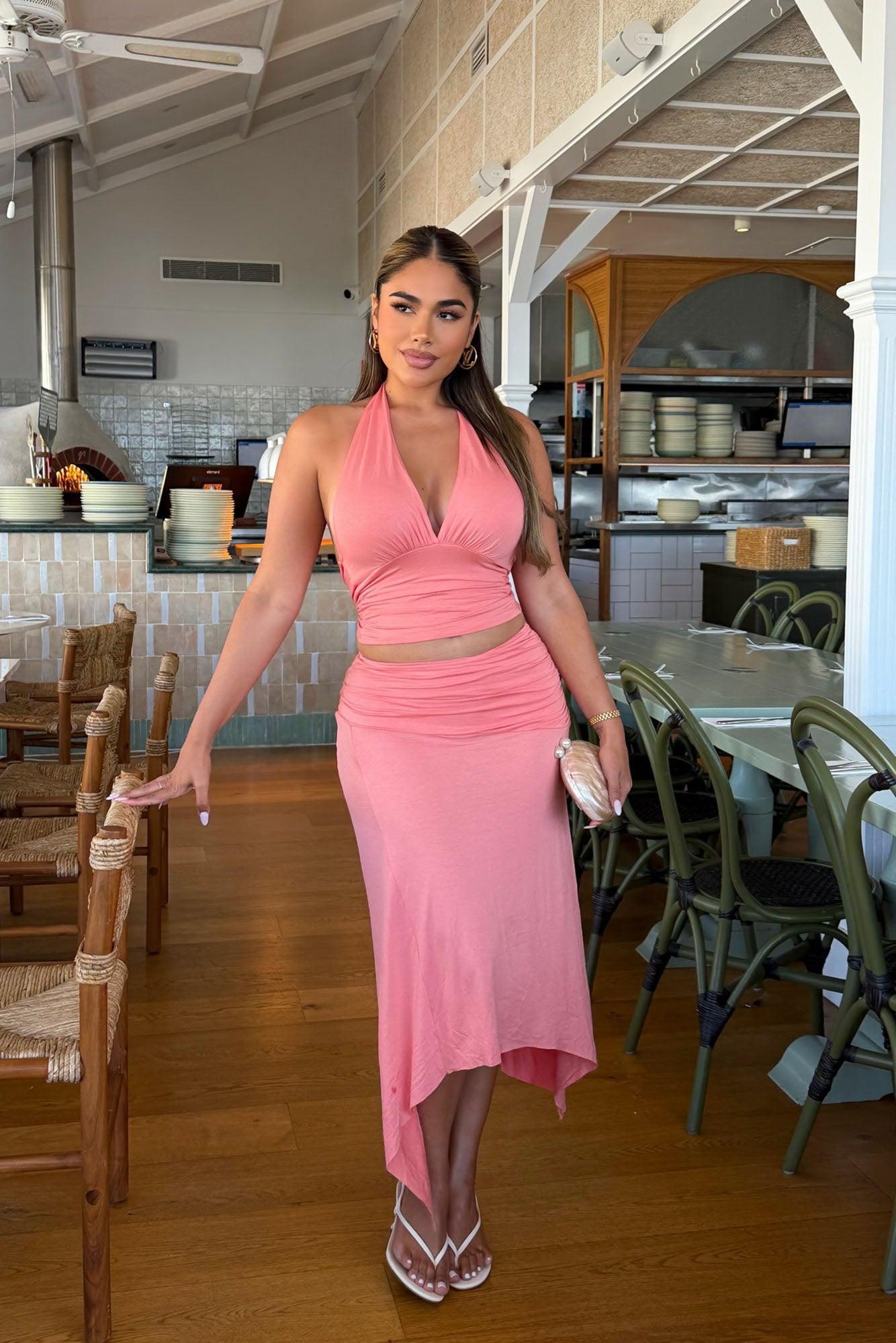 Alina Asymmetric Skirt Set - Peach