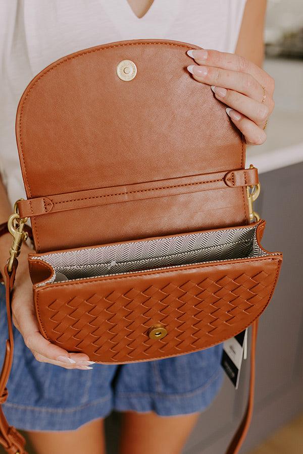 Alise Faux Leather Woven Crossbody in Brown