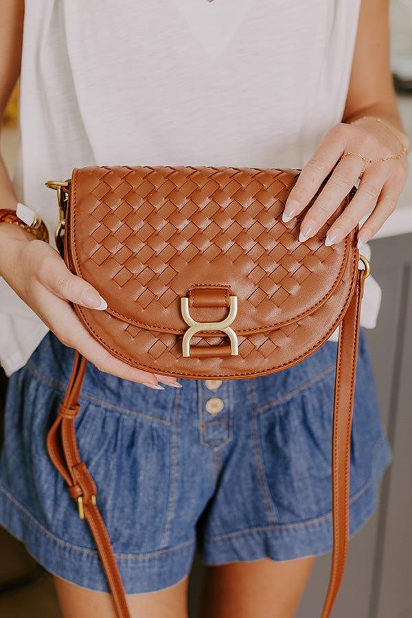 - Your first stop to fabulous is this chic purse! With a trendy woven design, it adds pop of style to any casual outfit. - Woven faux leather material - Gold colored metal hardware - Magnetic button and flap closure - A removable adjustable strap - A fully lined interior with a pocket
