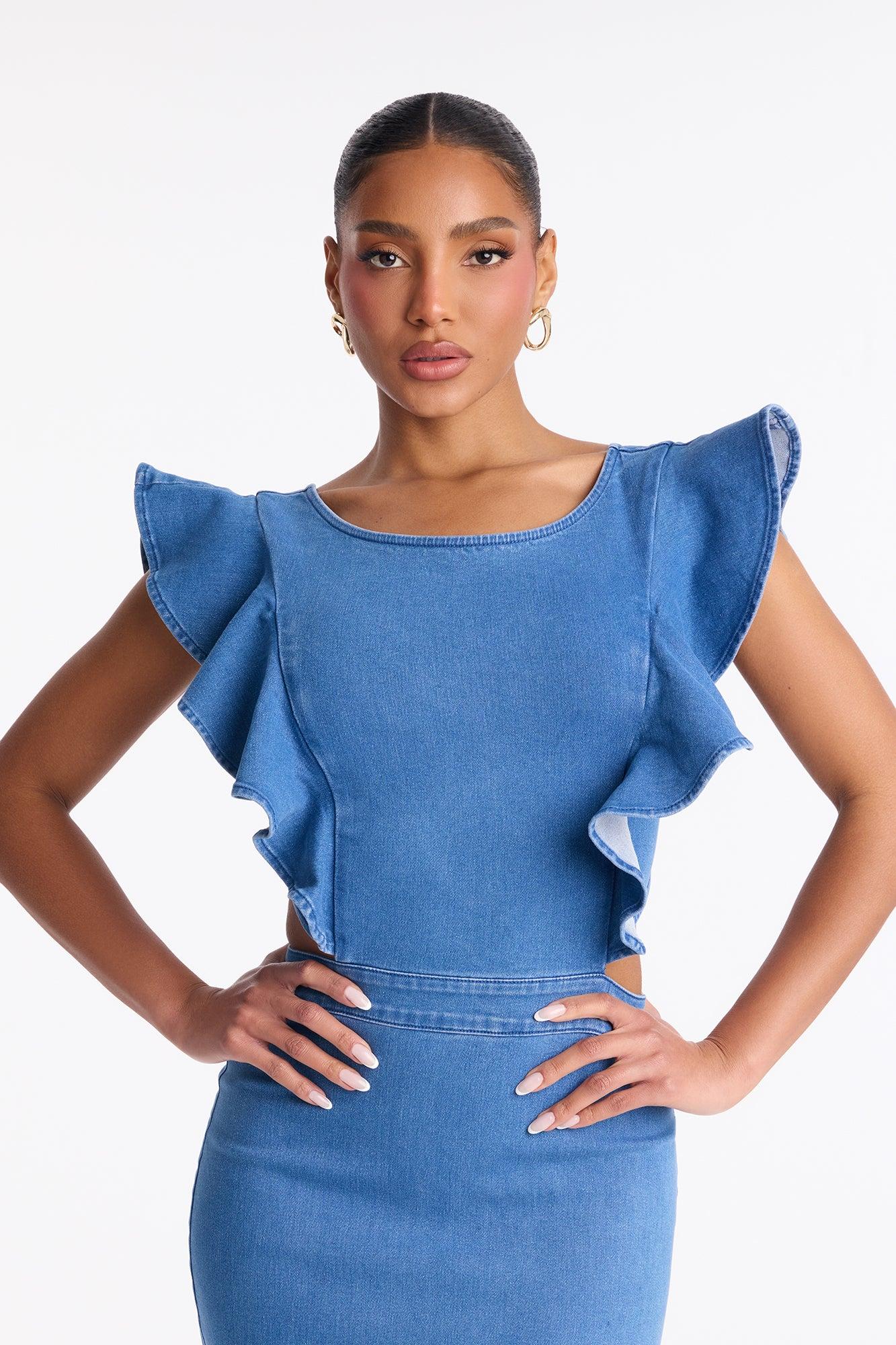 Alishia Denim Midi Dress - Medium Wash Female