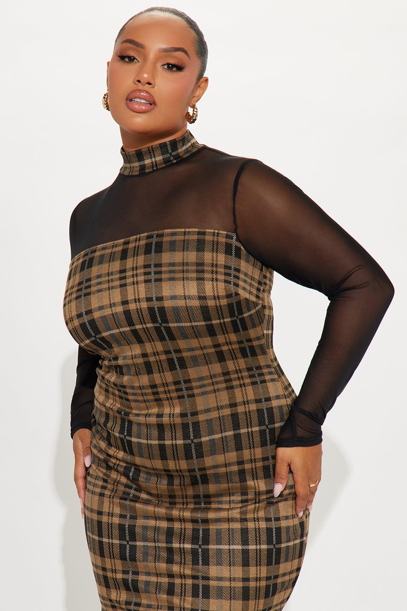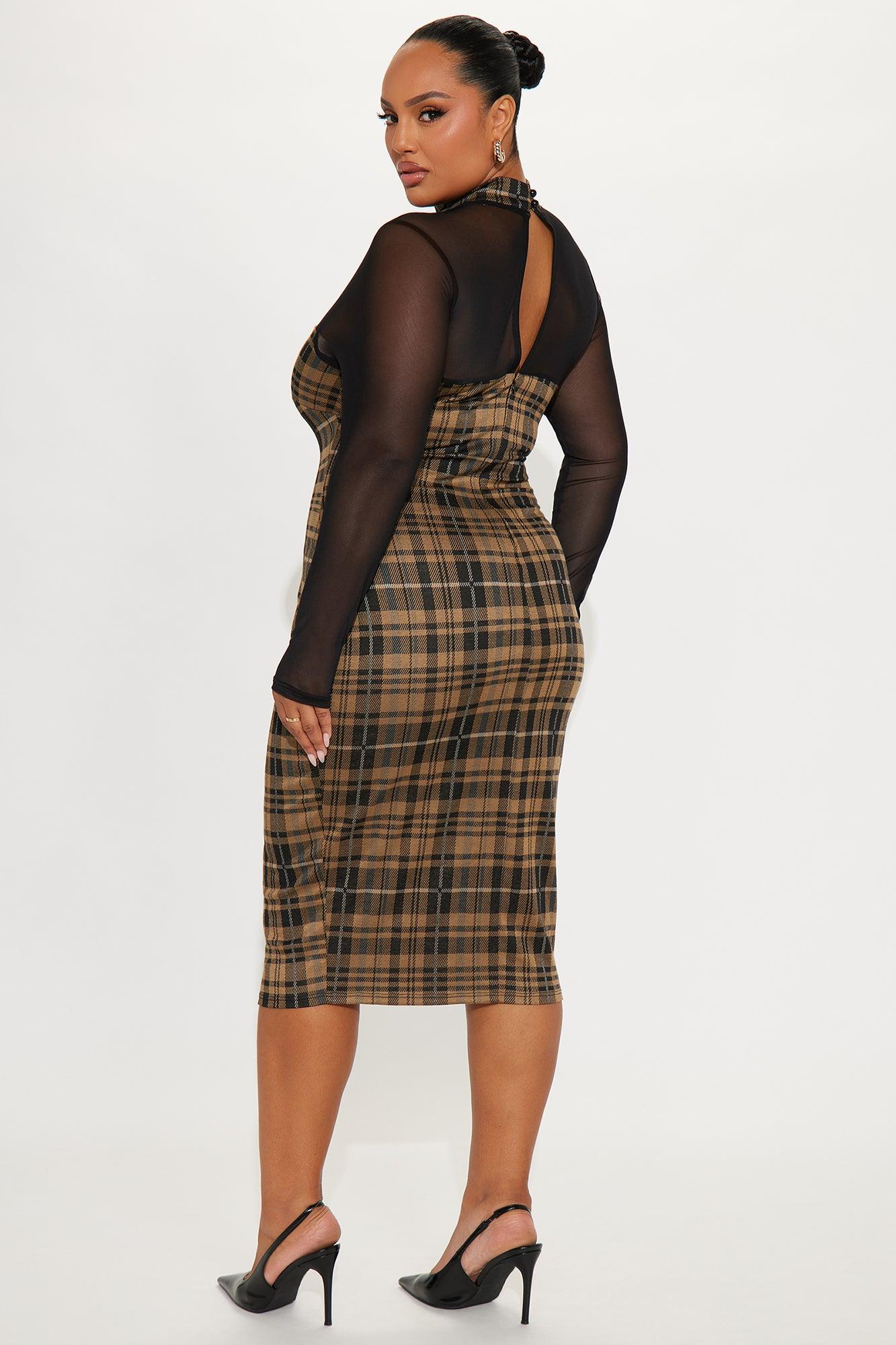 Available In Khaki/combo. Midi Dress Stretch Long Sleeve Mock Neck Button Closure Length Measured Flat= 45" Self: 84% Polyester 13% Rayon 3% Spandex Contrast: 95% Polyester 5% Spandex Imported California Proposition 65WARNING: Cancer and Reproductive Harm - www.P65Warnings.ca.gov.