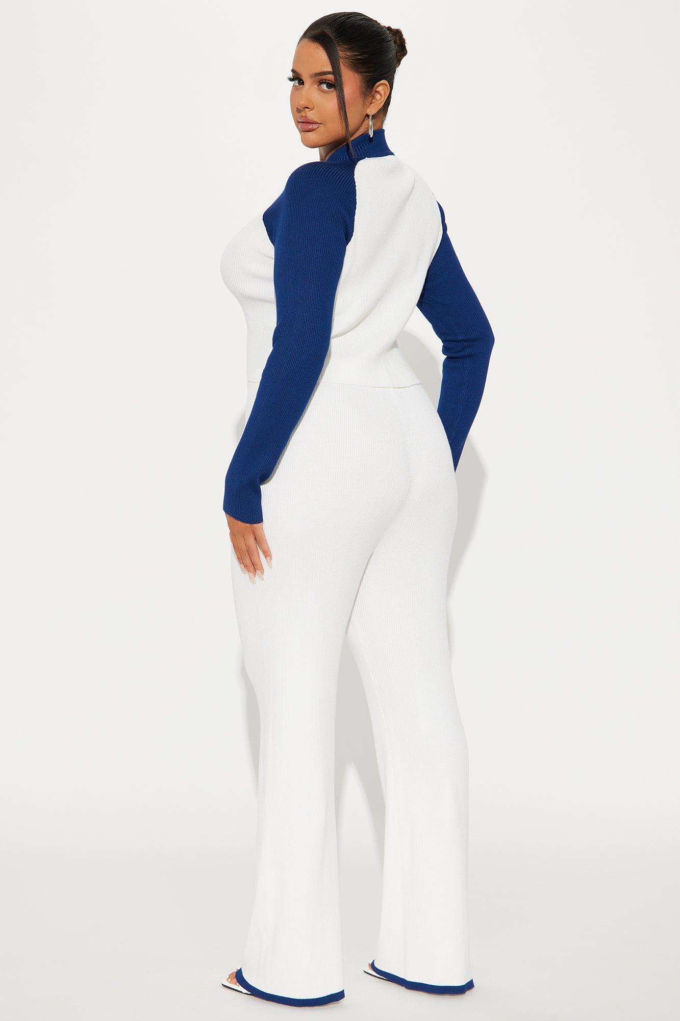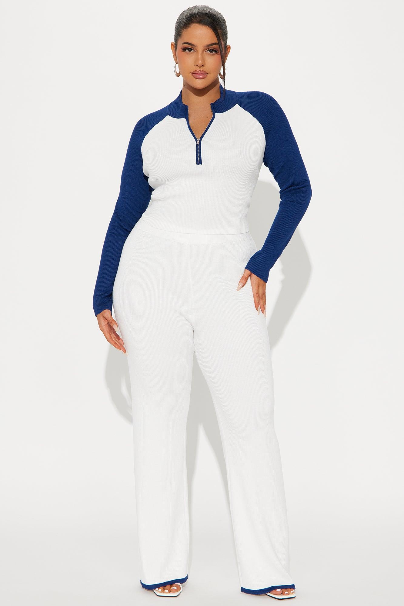 Available In Grey/combo And Ivory/combo. RIbbed Pant Set Pull Over Sweater 3/4 Zip Wide Leg Pant Elastic Waistband Stretch Self: 69% Rayon 31% Polyester Imported California Proposition 65 WARNING: Cancer and Reproductive Harm - www.P65Warnings.ca.gov.