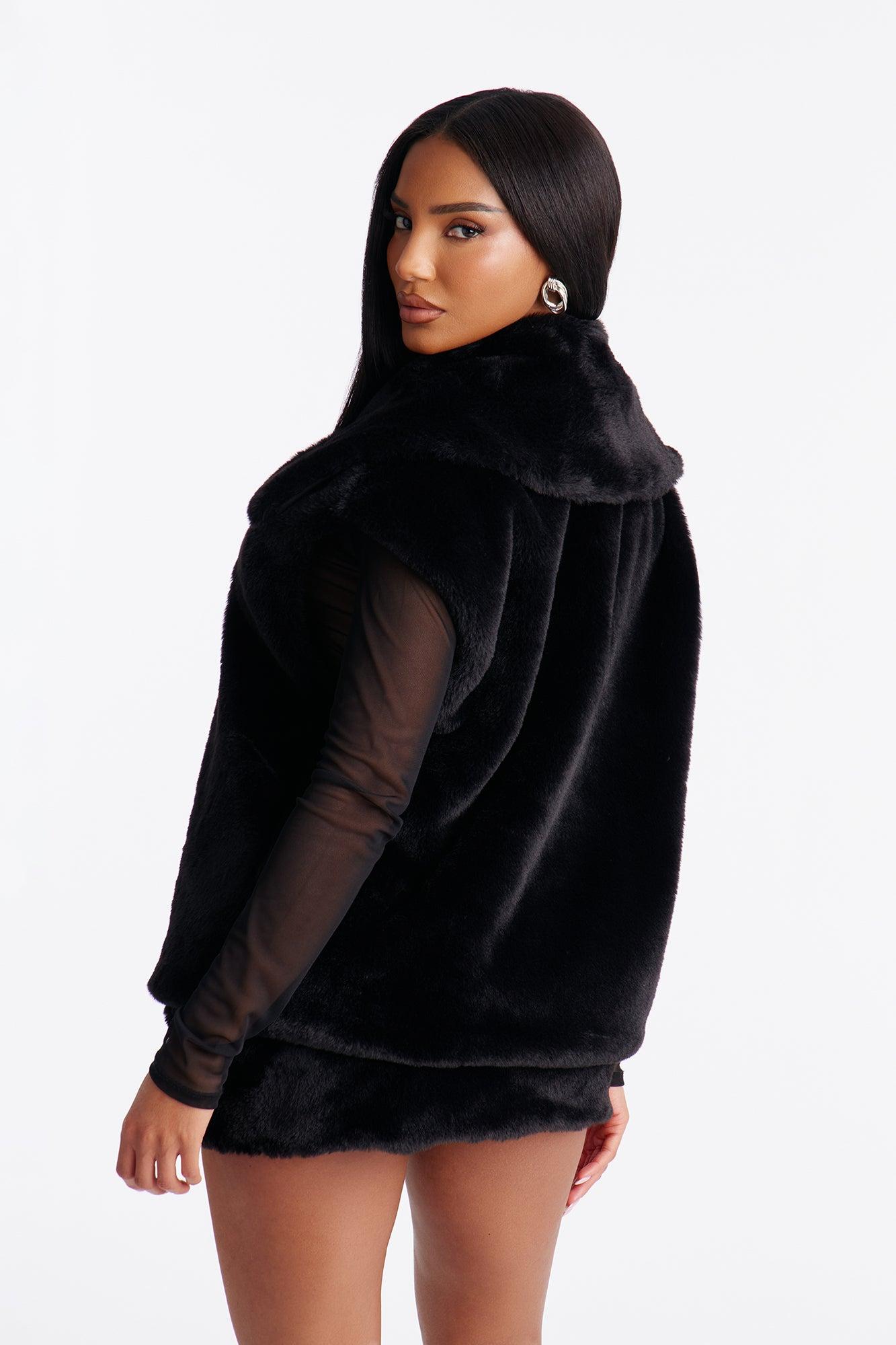 All A Dream Faux Fur Vest Mini Skirt Set - Black Female