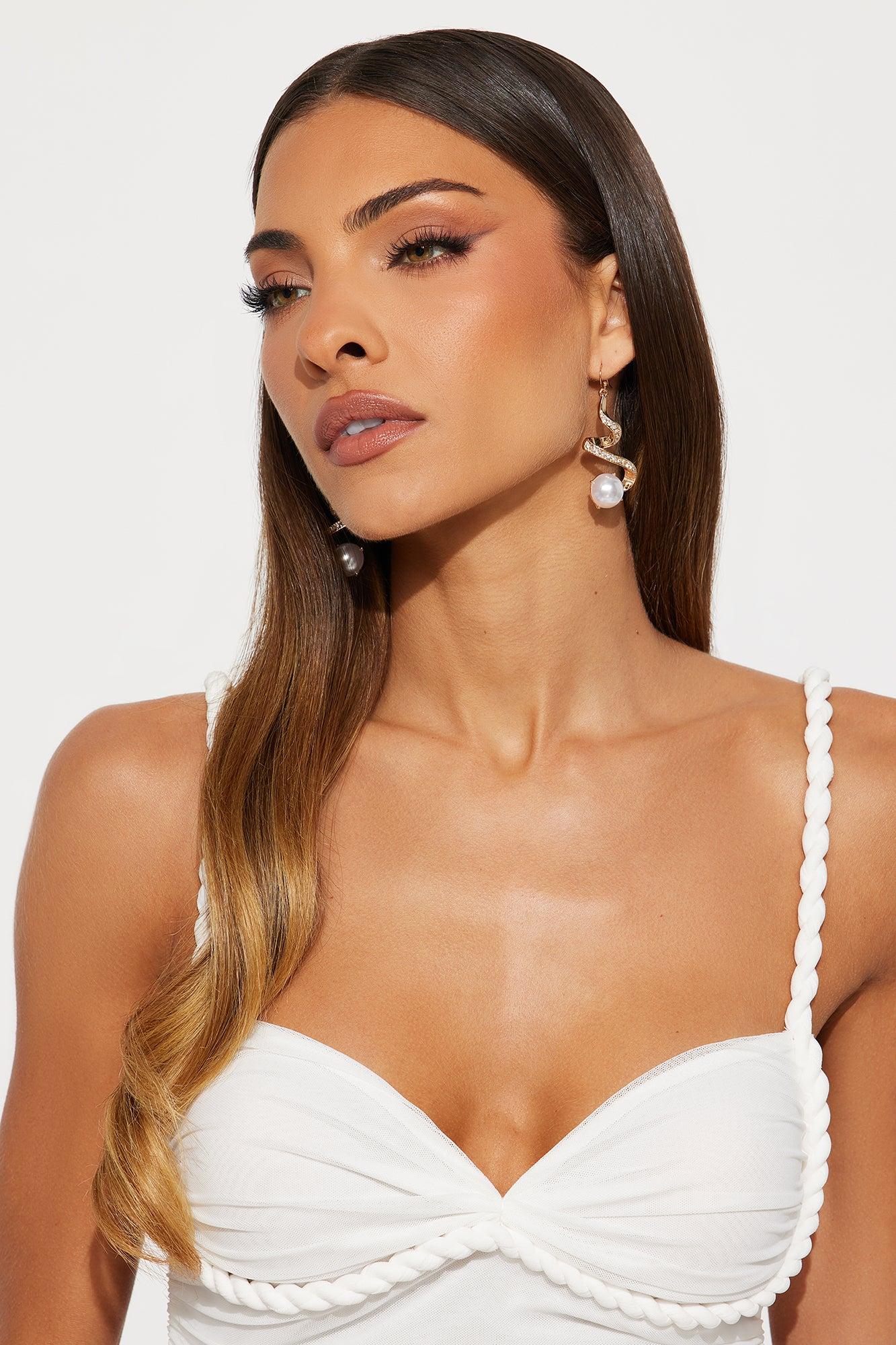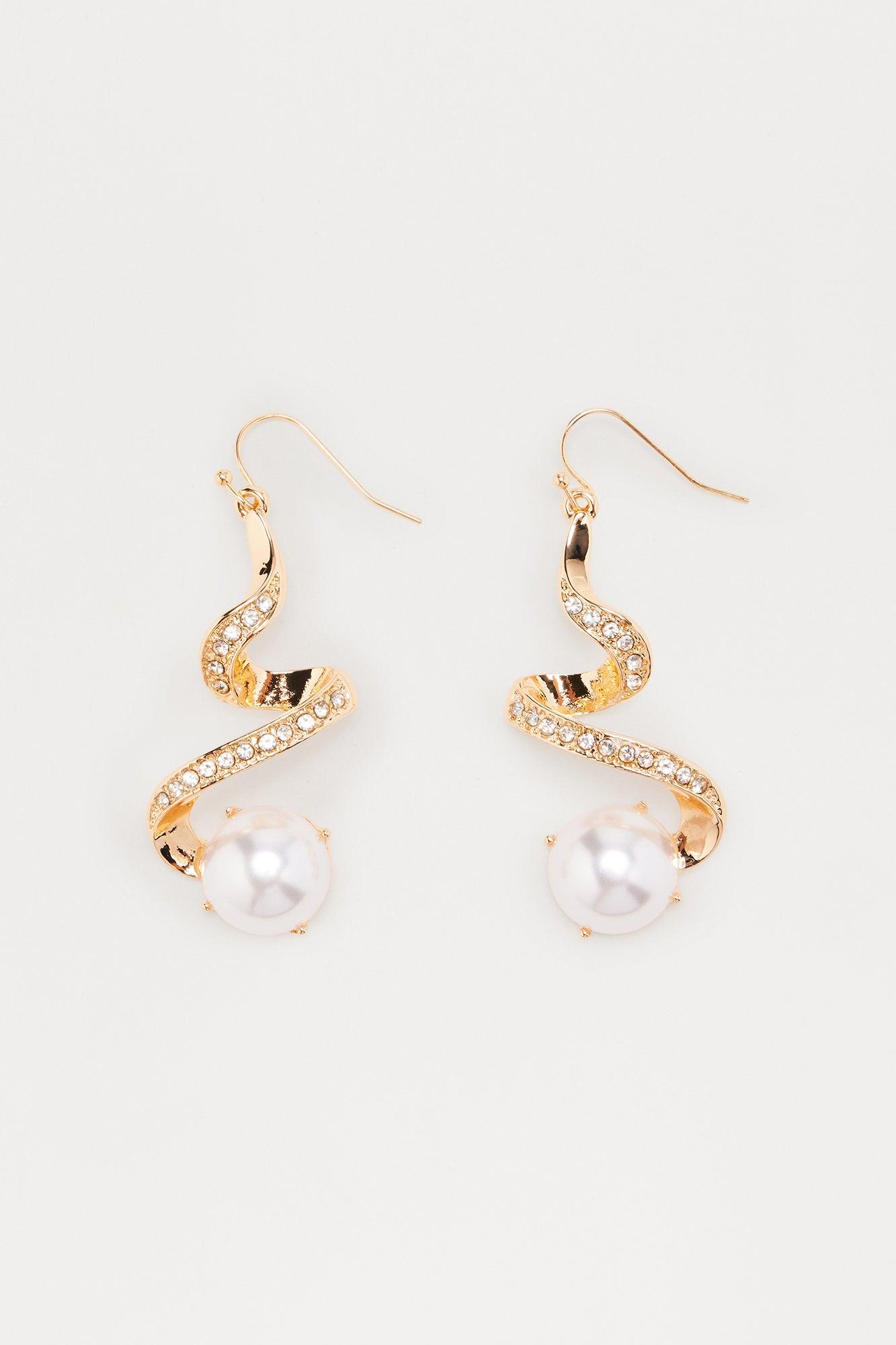 Available In Gold. Drop Earrings Rhinestone Trim Pearl Detail Post Back Closure Final Sale Imported