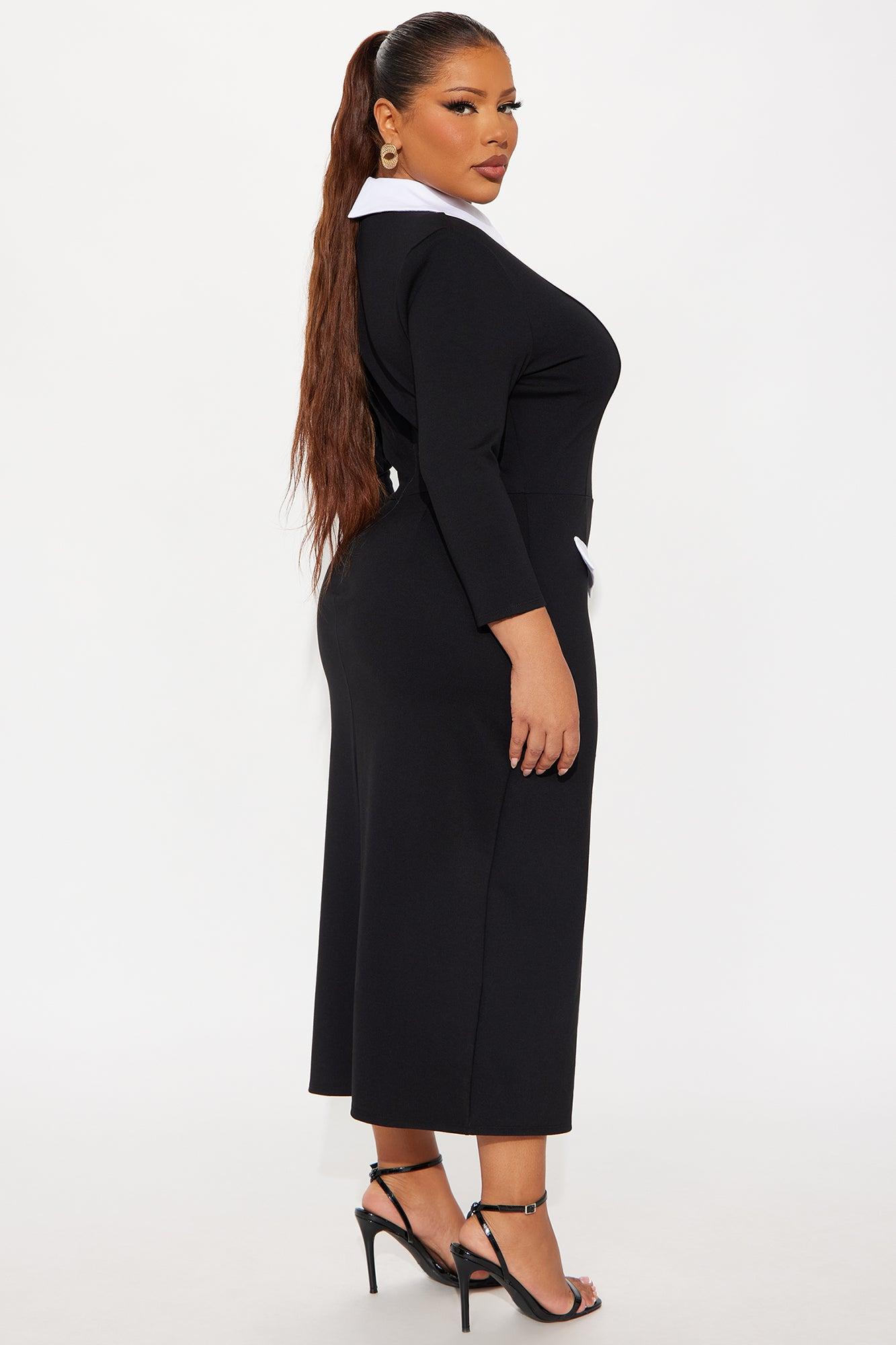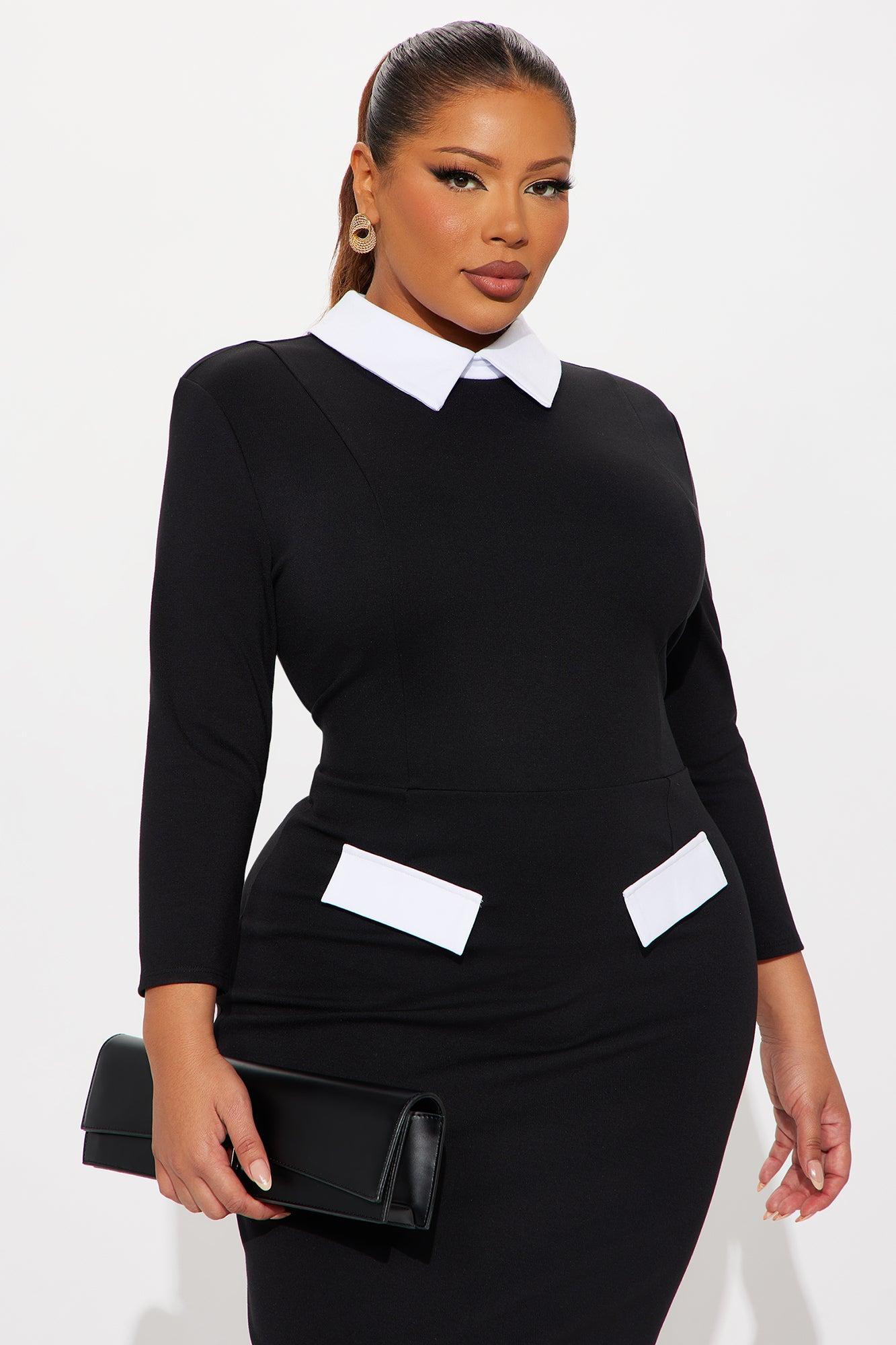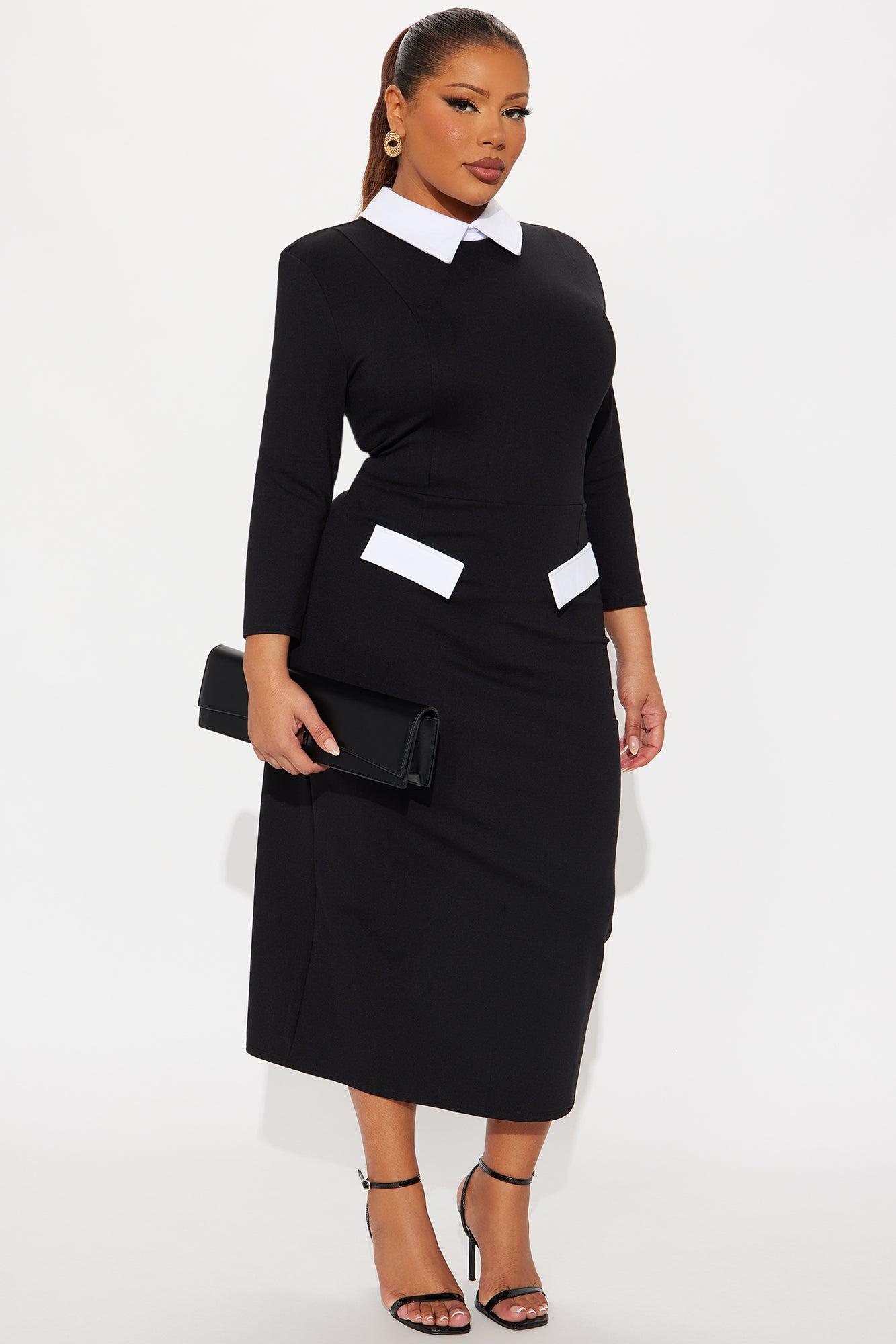All Business 3/4 Sleeve Ponte Midi Dress - Black/White Female