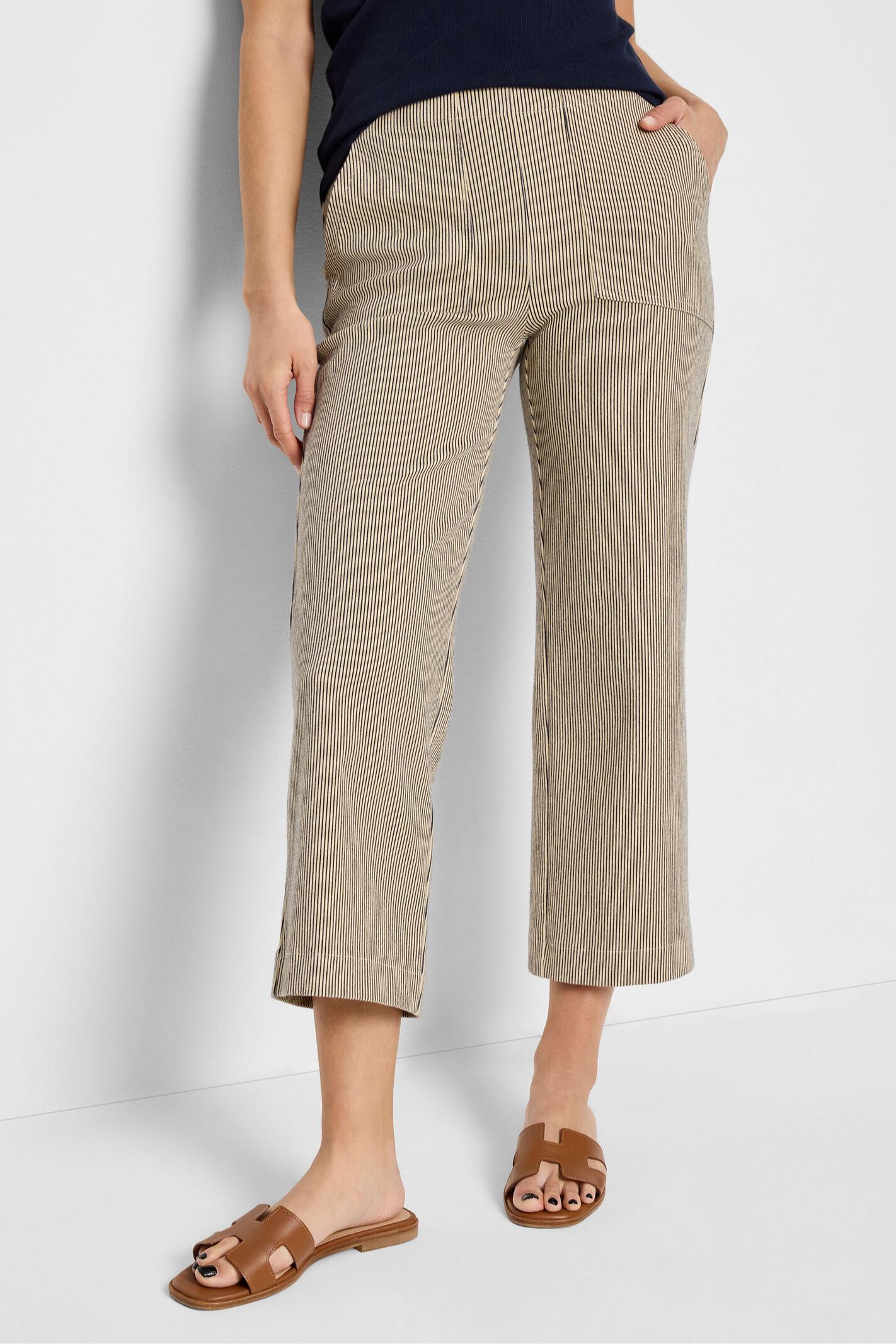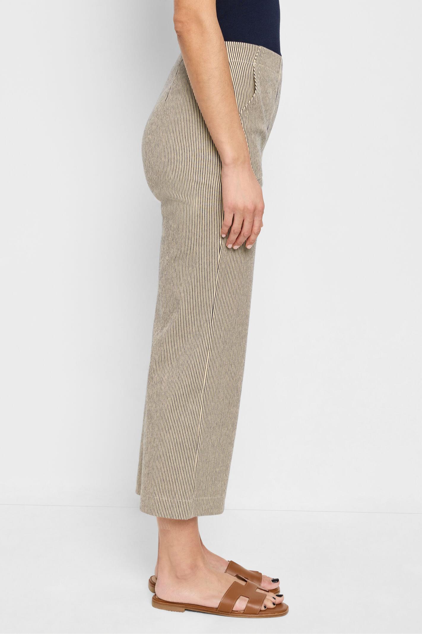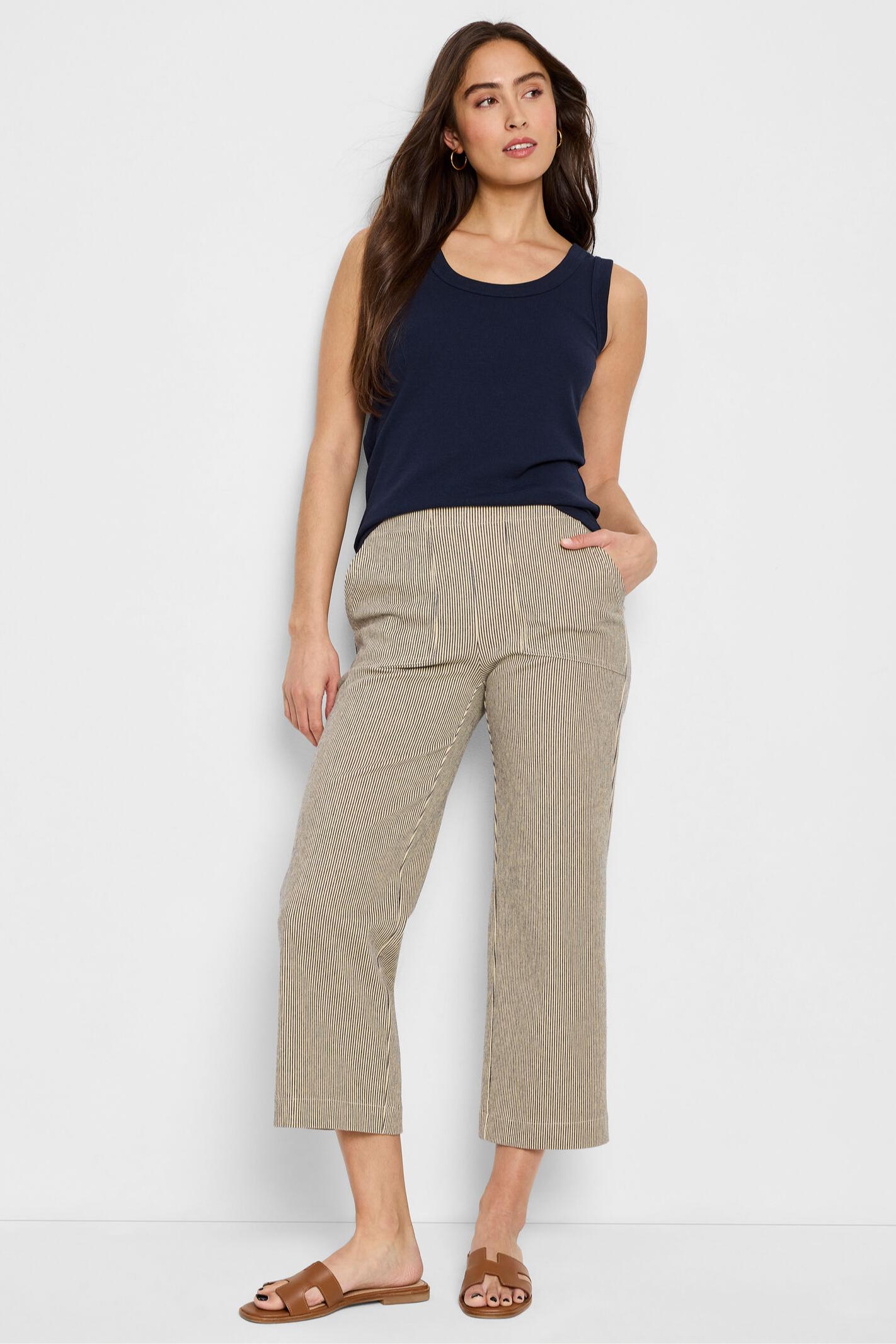 Looking for more from your daily denim? We've got you. Knit in railroad striping transforms these from another wide-leg jean into a unique fashion statement piece. Made from our super soft denim with a little bit of stretch knit in, these pull ons feature a cropped leg to make the most of the wide-leg silo and slash pockets for added utility.