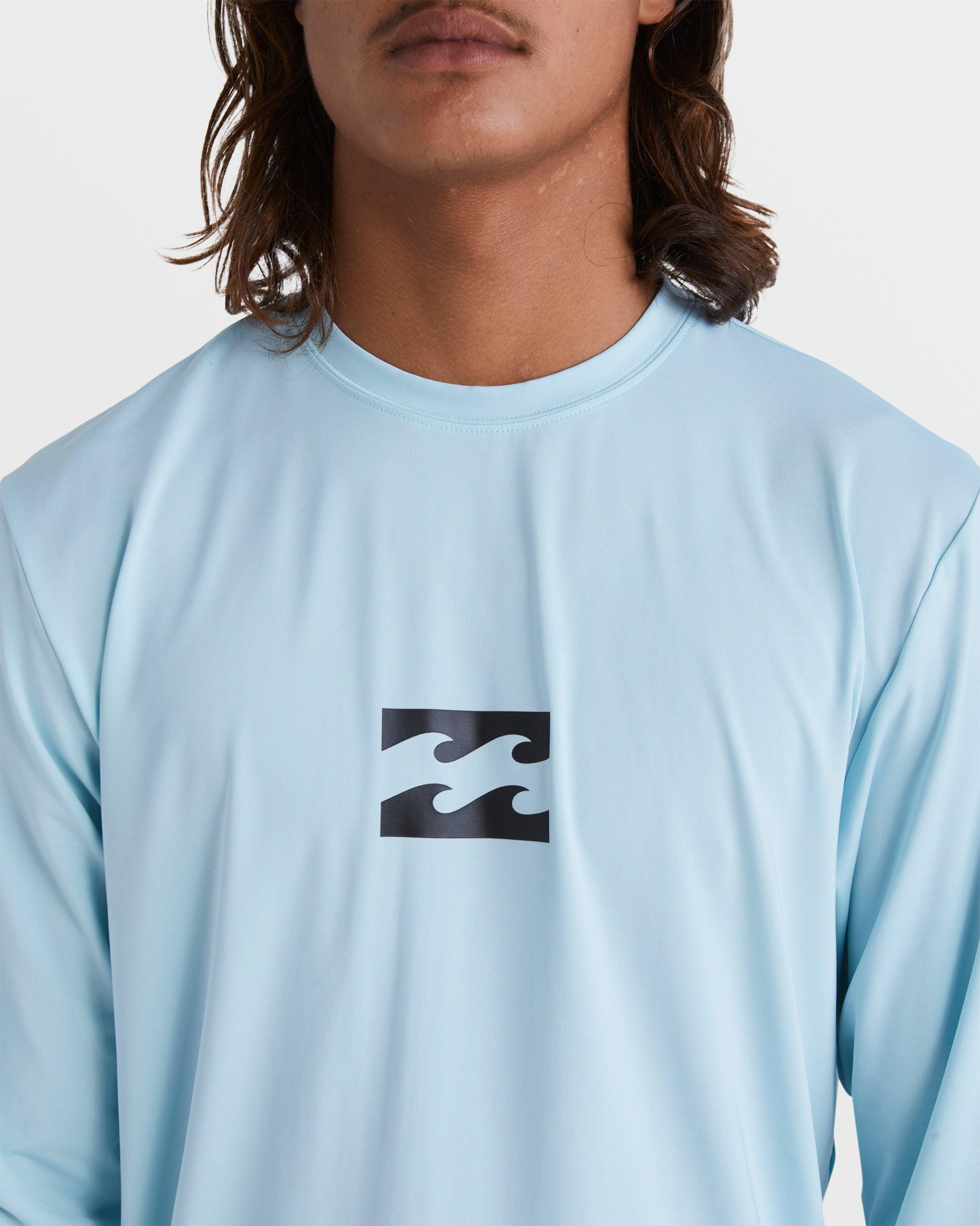 The All Day Wave Loose Fit Long Sleeve Surf Tee is a hybrid jersey rash guard, with a hooded neck and 50+ UV protection. Sun safe and comfortable. Featured here in the Coastal Blue colorway. Features Hybrid Jersey Fabric Performance Fit Long Sleeve Rash Guard Hooded Neck 50+ UV Protection