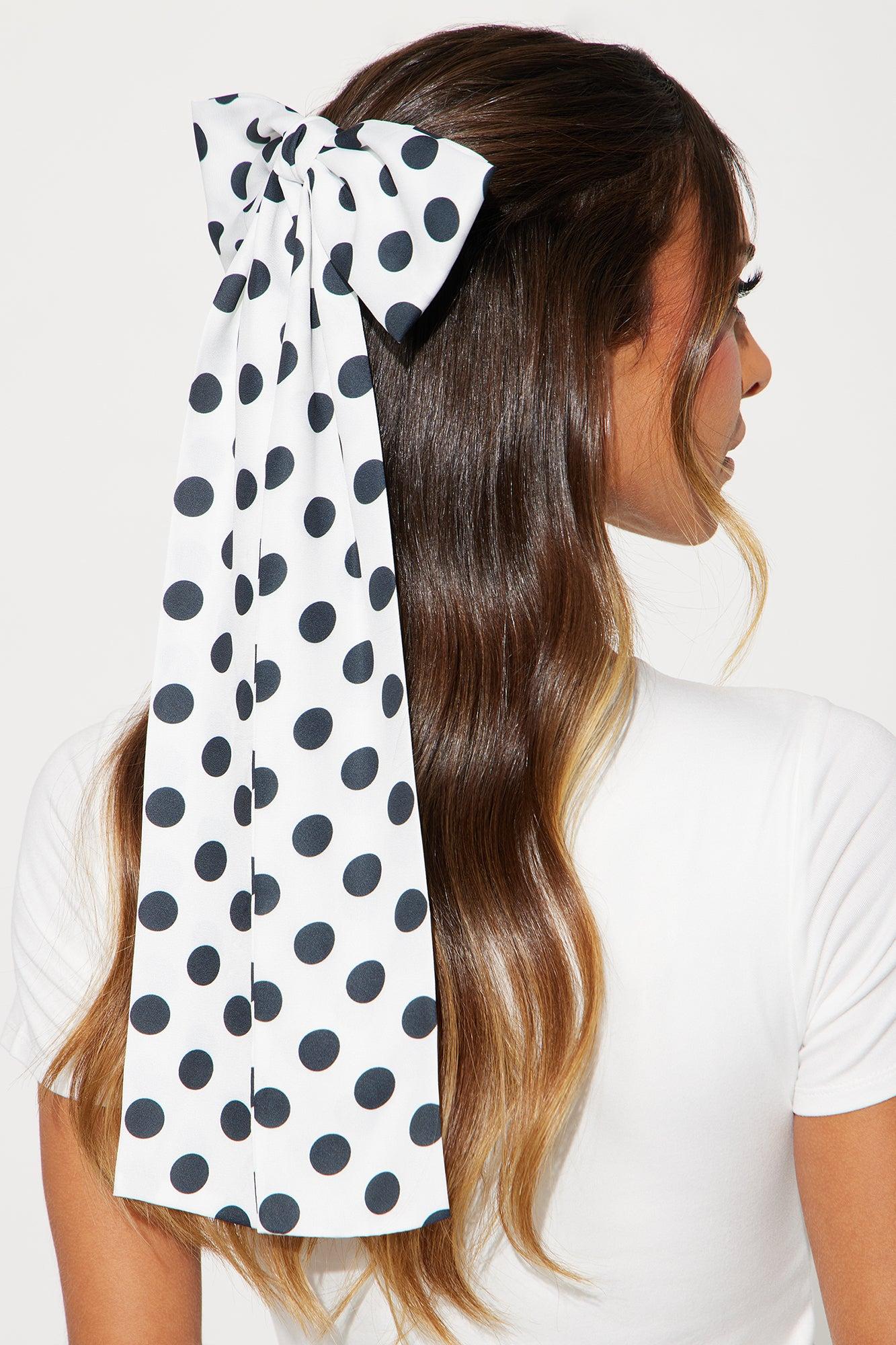 All Dolled Up Polka Dot Bow Hair Clip - White/Black