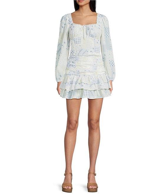 All in Favor Coordinating Patchwork Print Tiered Fit & Flare Mini Skirt
