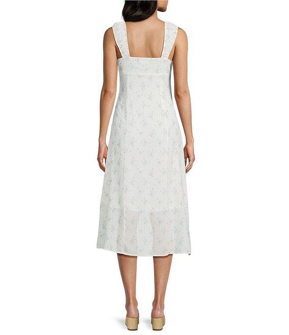 All in Favor Floral Print Short Sleeve V-Neck Lace Midi Dress