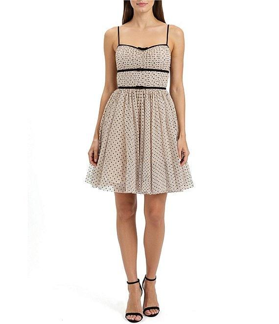 All in Favor Polka Dot Contrast Bow Detail Mini Dress