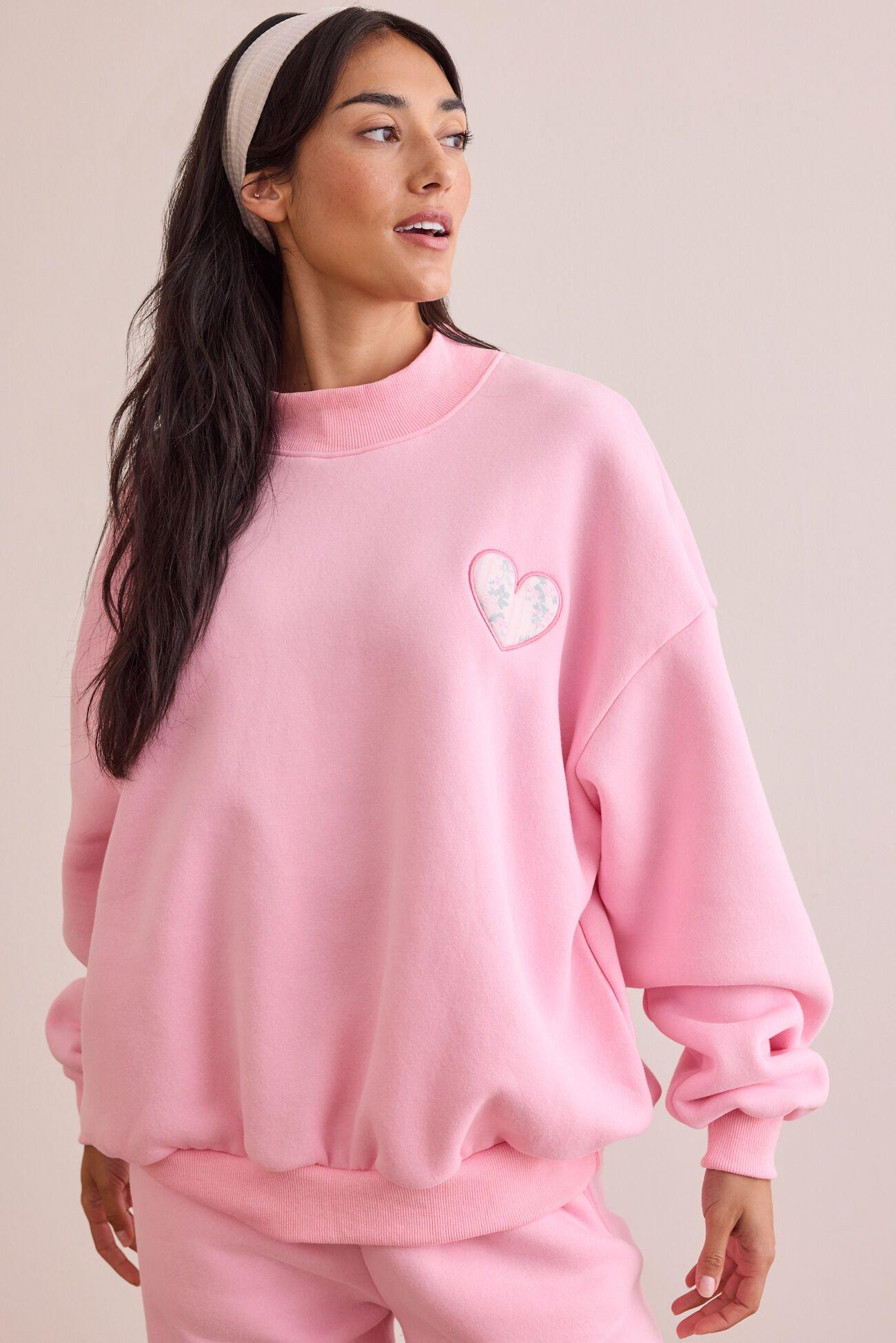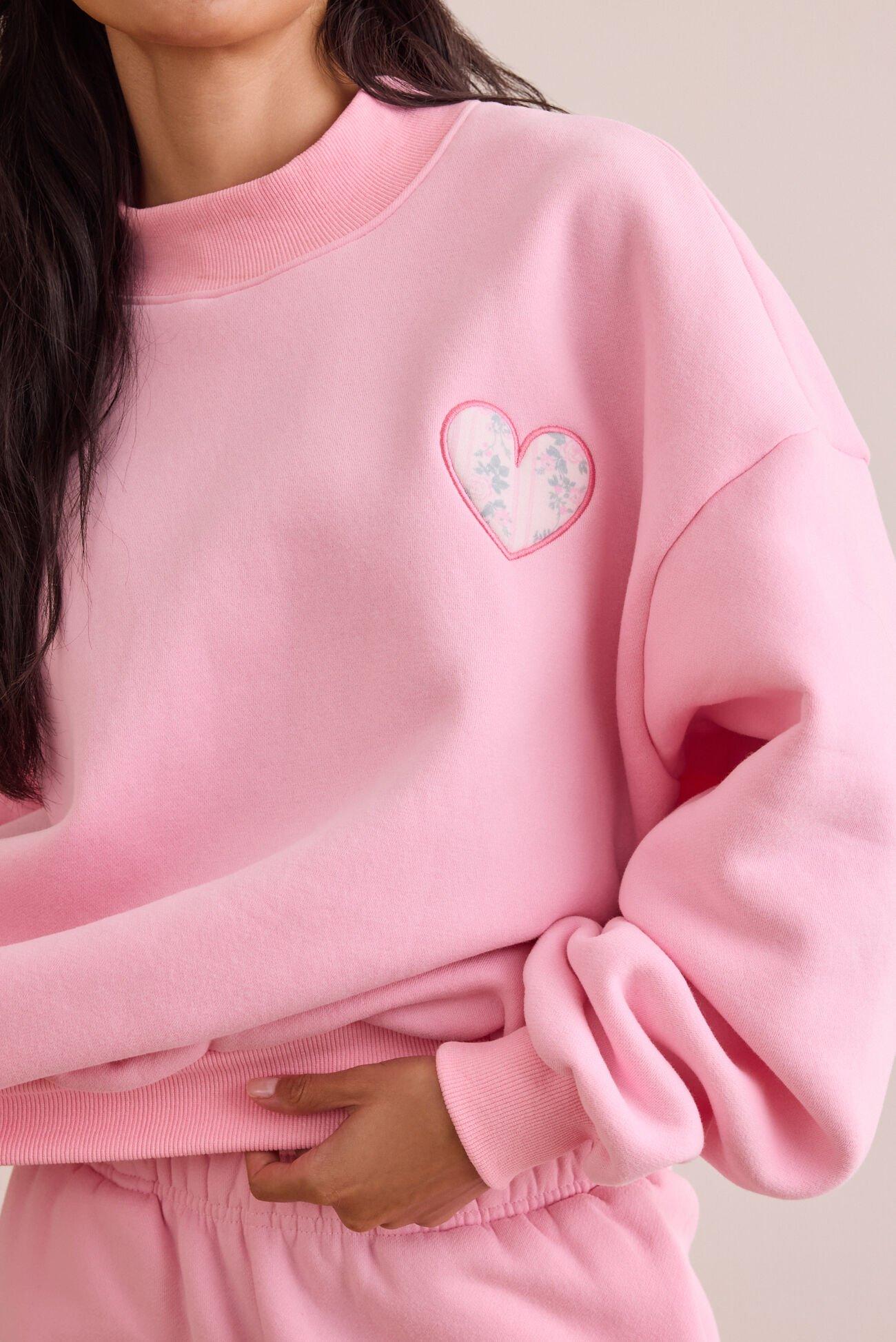 This mockneck pullover brings a sweet twist to your everyday loungewear with a simple heart accent and plush fleece fabric. From cozy mornings to laid-back nights, this pullover is your new go-to for effortlessly cute comfort. Pair it with the matching joggers for an extra comfy outfit.