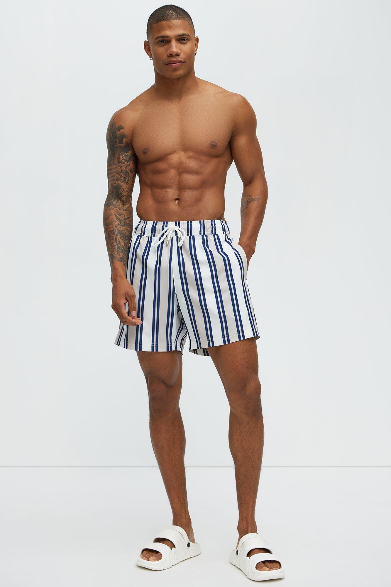 All Over Striped Striped Swim Mid Trunk - Blue/combo Male