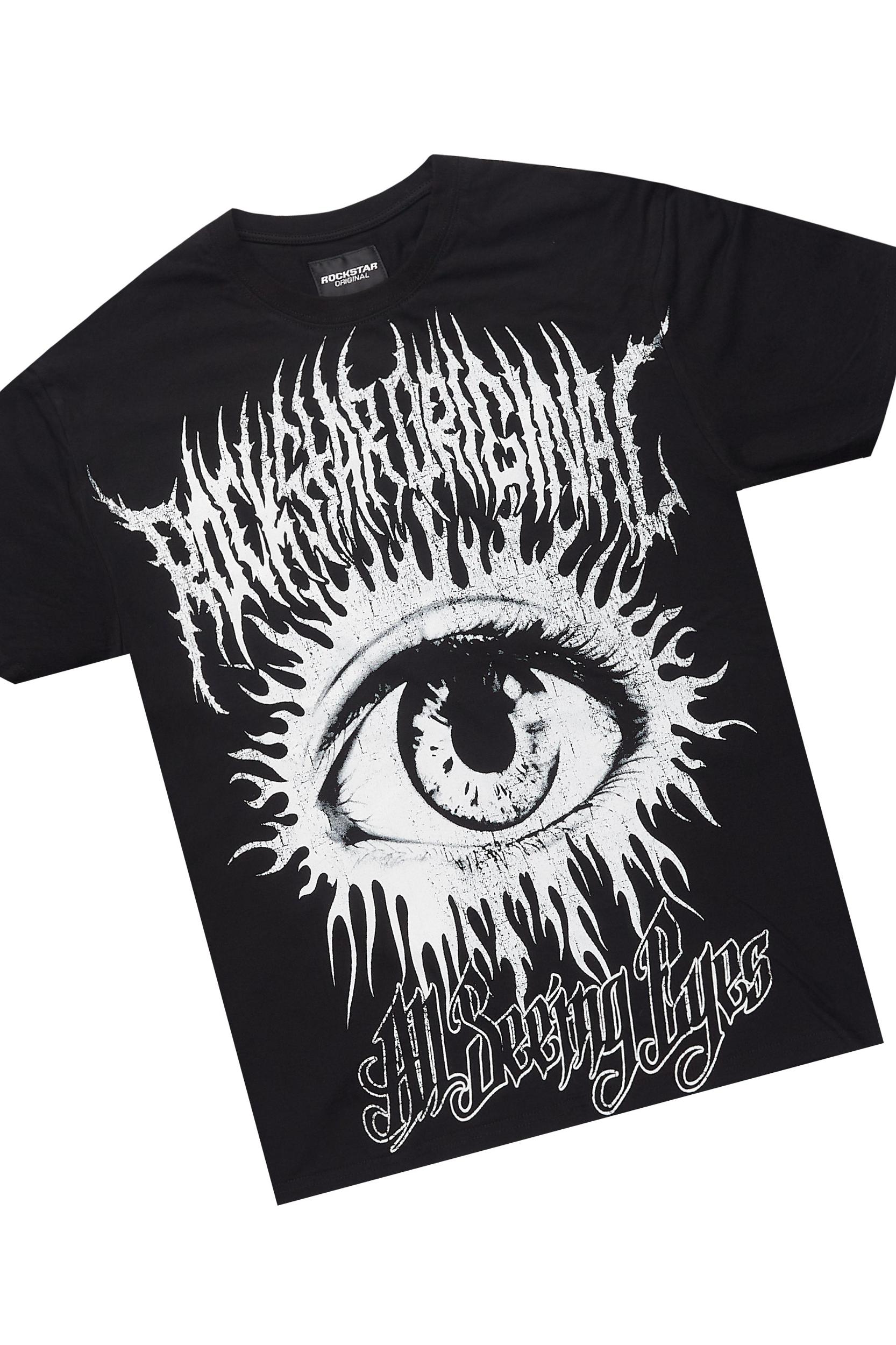 An urban two-piece athleisure tee and cargo short set for men in black. Designed with organic cotton and custom detailing for a lightweight everyday set. Crew neckline Short sleeves Pullover style Relaxed-fit Drawstring waistband Mid-rise waist line Cargo pockets Barrel-leg trousers Custom RSO graphics