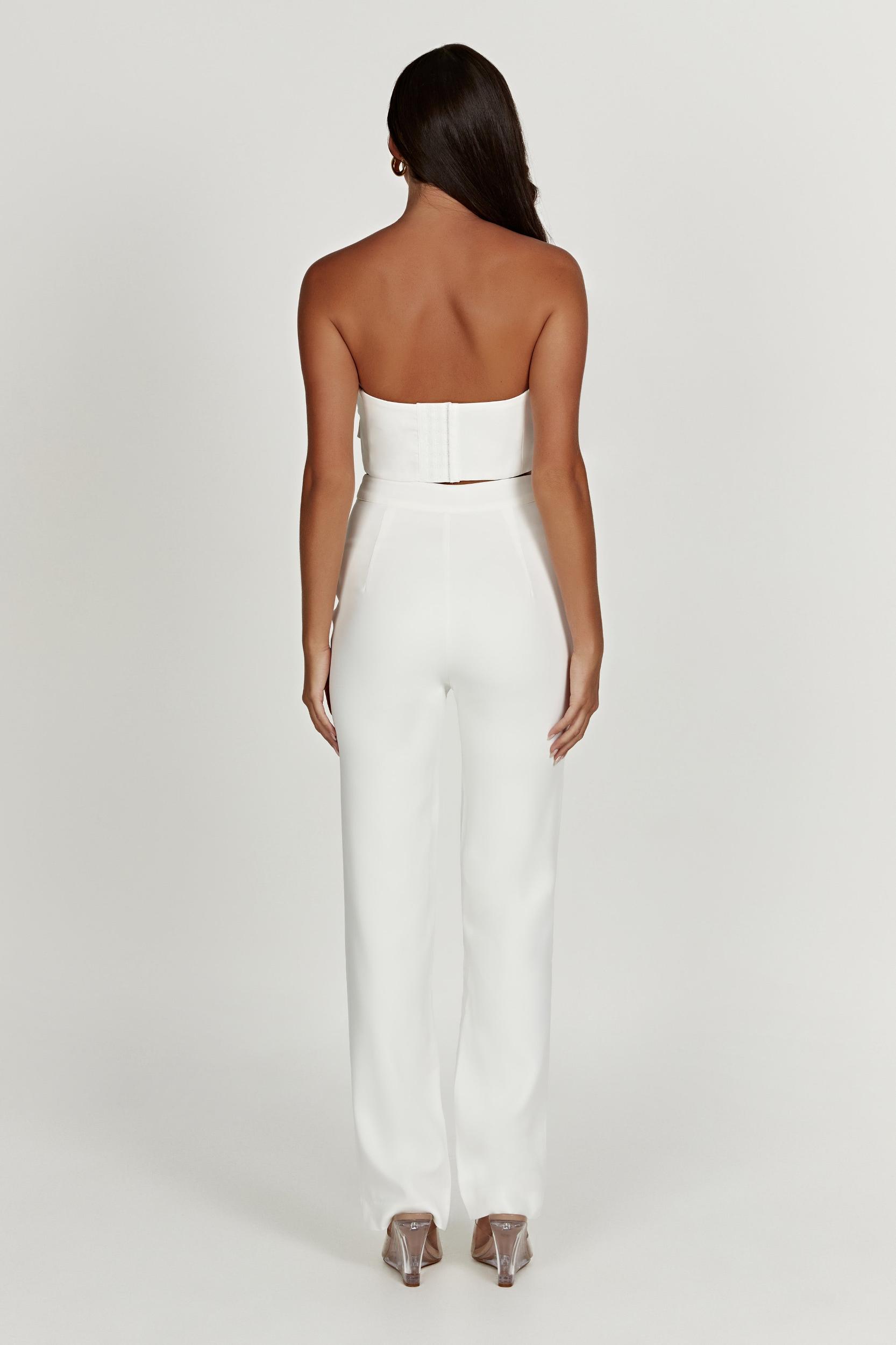 Make it formal. The ALLANAH Straight Leg Pants are a wardrobe staple in any hue but we’ve released them in white for brides looking for a non-traditional wedding day styling alternative. Crafted from our much-loved MESHKI crepe fabrication, these offer a full-length fit and straight leg design, while the high waist and fly closure add a formal touch. Pair with our Paloma Rose Crop Top for a season of festivities. FEATURES: High waisted Fly closure with flat hook and eye Fused Straight leg Unlined Full length FIT, FABRIC & CARE: Natalie is 173cm/5'8 and wears a size S Length (Size S): 112cm Fibre Comp: 100% Polyester Wash Care: Cold gentle hand wash with like colours, do not soak or wring, do not bleach, do not tumble dry, dry in shade, so not iron, do not dry. Stretch Factor: 0/3 Designed exclusively for MESHKI in Australia.