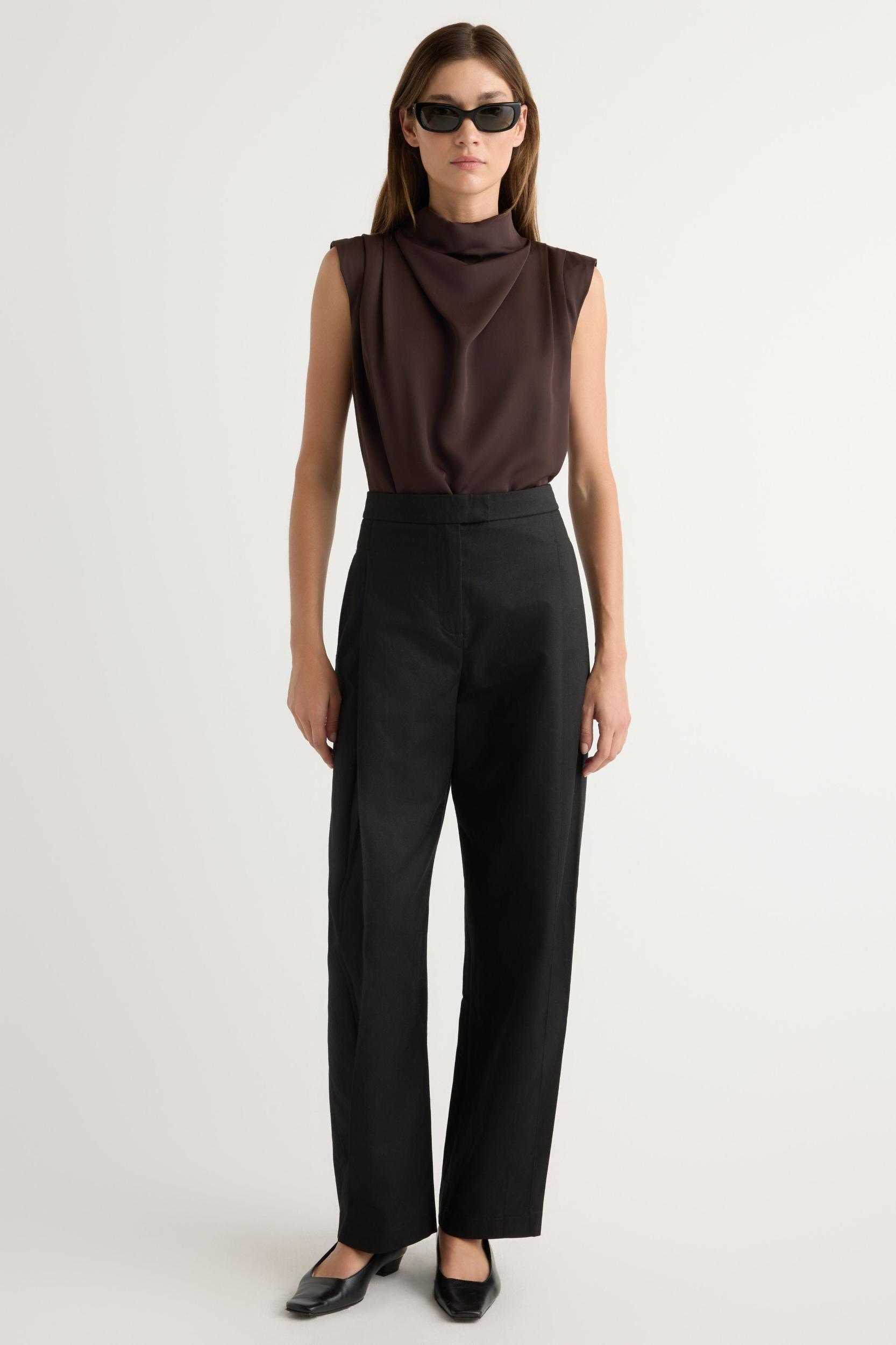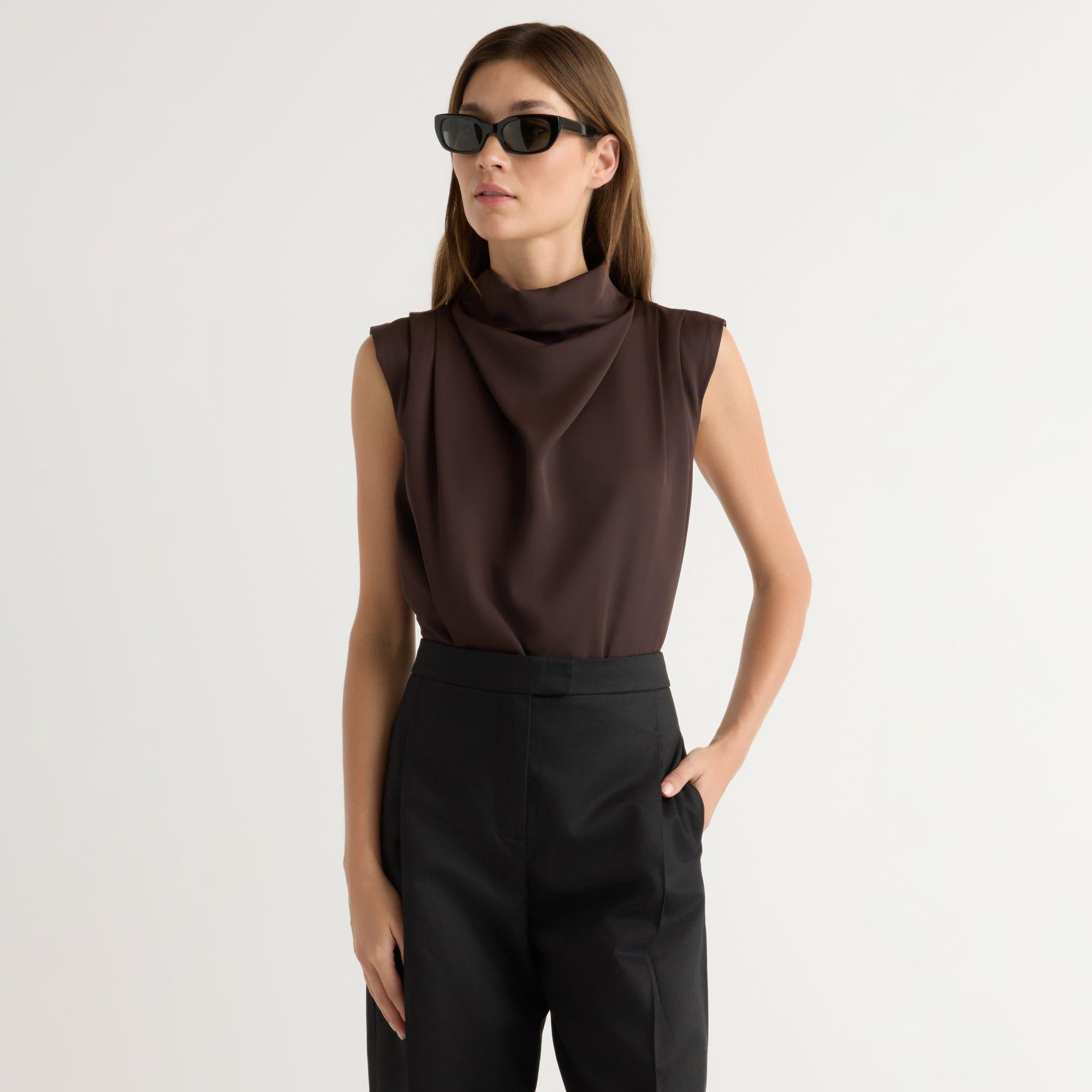 A refined, feminine sleeveless blouse with a beautiful gathered neckline — perfect for the office and the weekend styled with trousers or a midi skirt.