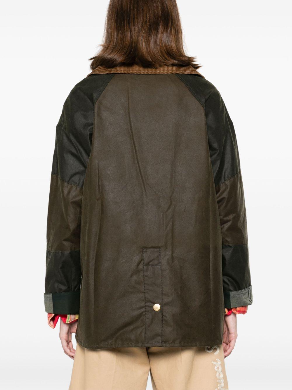 Barbour Allerston coat | Green | dark green | cotton | textured finish | front zip fastening | corduroy collar | long sleeves | two chest welt pockets | two side flap pockets | embroidered logo to the side | central rear vent | straight hem | Polyester/Cotton/Cotton/Recycled Polyester | Parkas | Coats | Clothing | Women