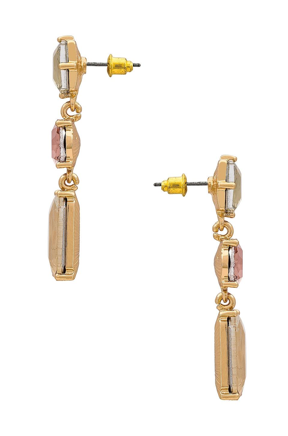 Gold plated multi-color stones. Made in China. Post back closure. Measures approx 2" dangling. Revolve Style No. PETM-WL330. Manufacturer Style No. MS1599.