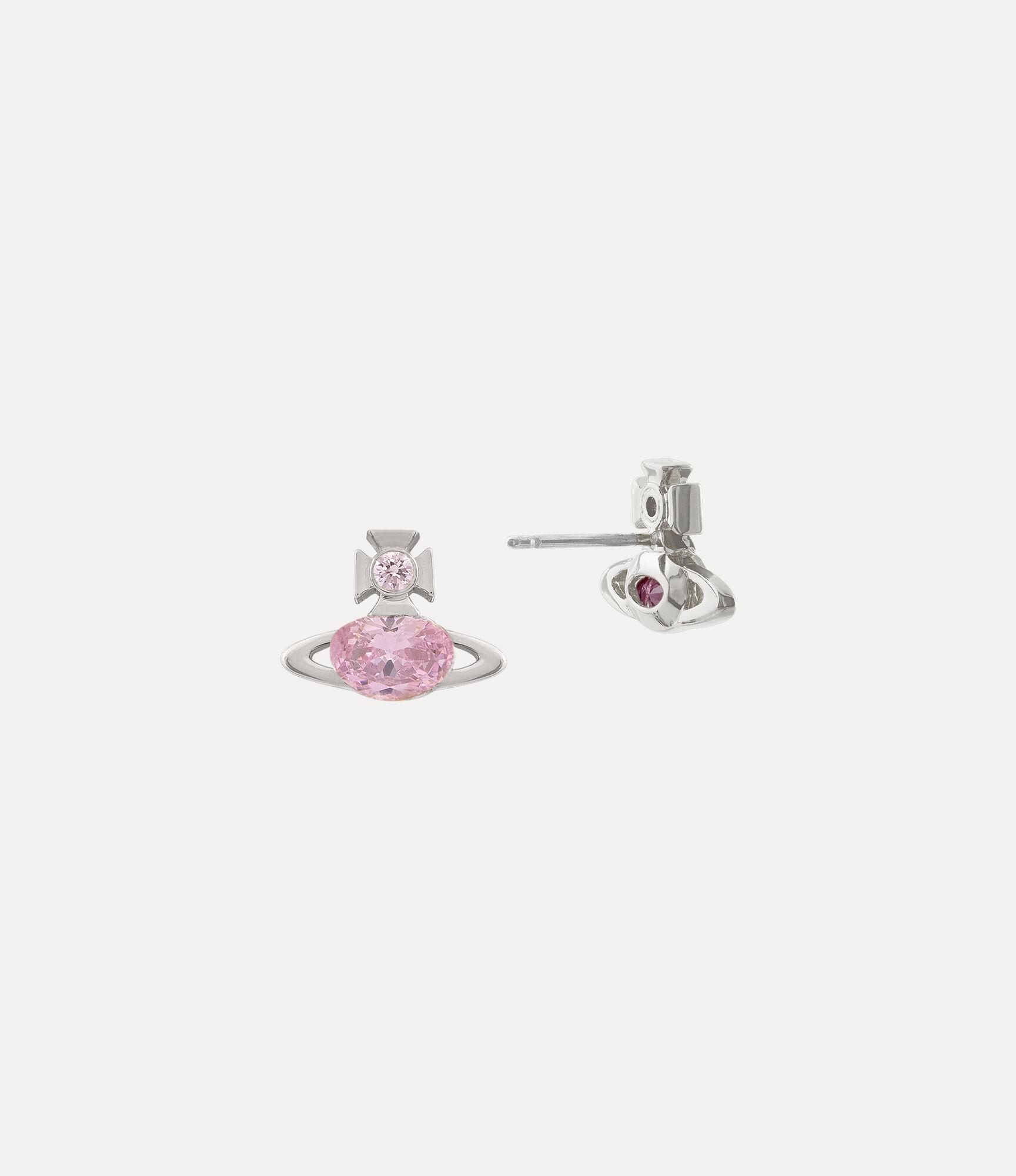 Our Allie earrings return this season, complete with polished, silver-toned plating and a pink crystal in the centre of the metal framework. The design takes inspiration from our orb motif, which symbolises tradition, encircled by the celestial rings of Saturn, representing the future.
