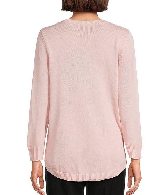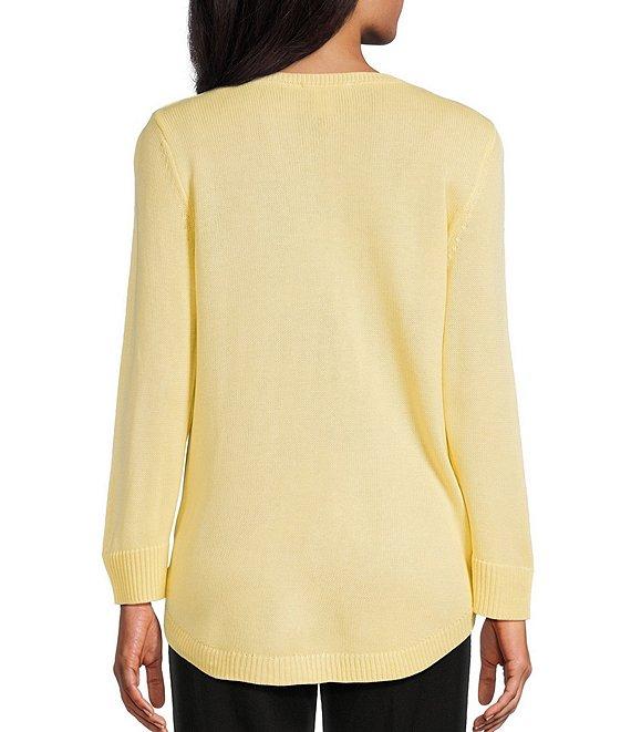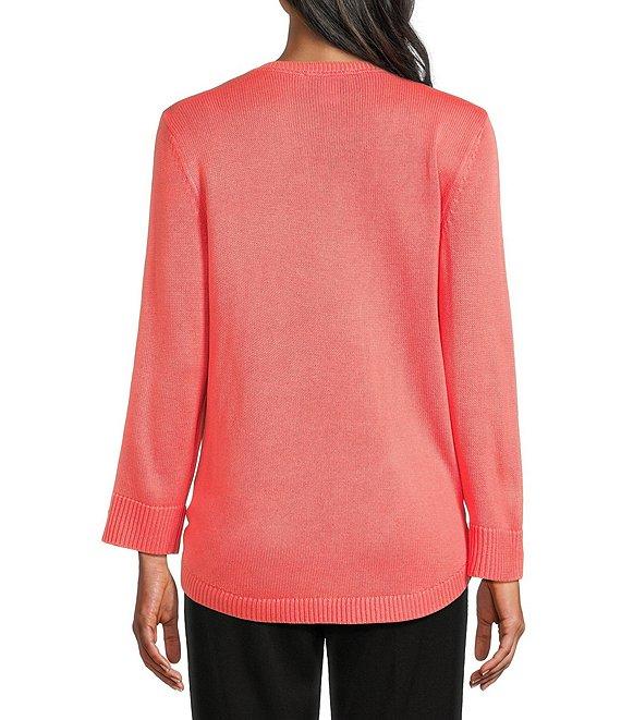 Allison Daley 3/4 Sleeve Crew Neck Curve Hem Diagonal Rib Front Sweater