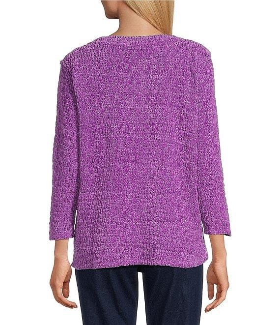 Allison Daley Petite Metallic Chenille 3/4 Sleeve O-Ring Keyhole Knit Top