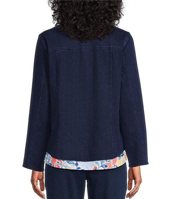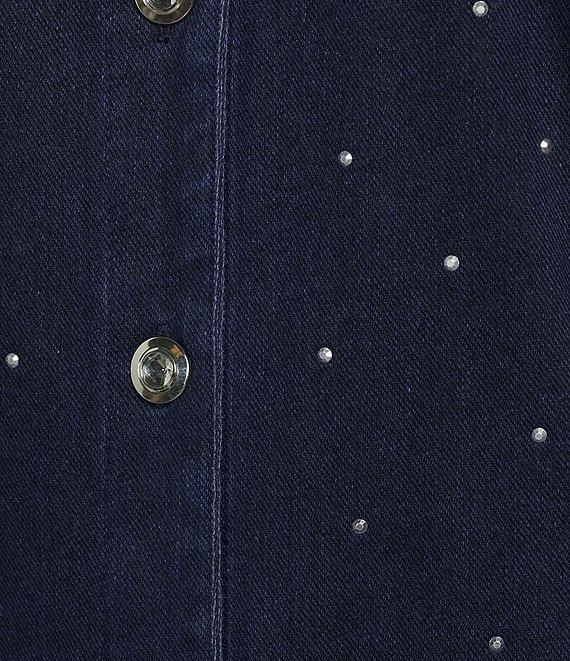 Allison Daley Petite Size Embellished Long Sleeve Point Collar Button Front Knit Denim Jacket