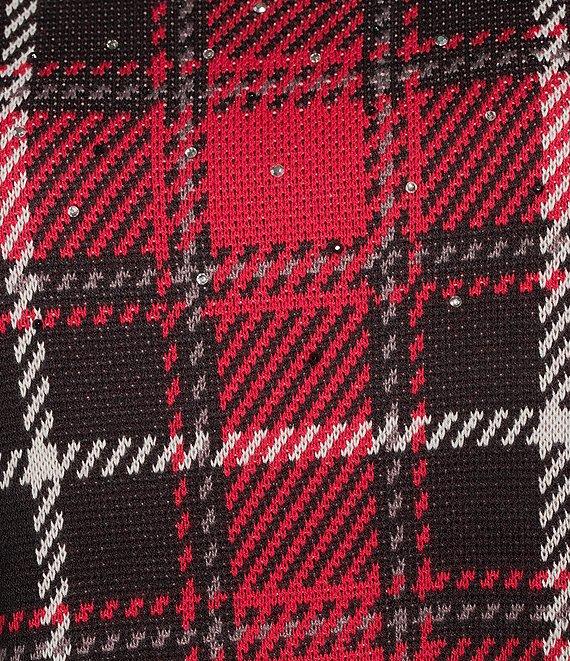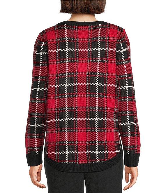 From Allison Daley Petites, this sweater features: Blanket plaid jacquard fabrication Crew neckline Long sleeves Pullover construction Embellished detail Acrylic Hand wash/lay flat to dry Imported.
