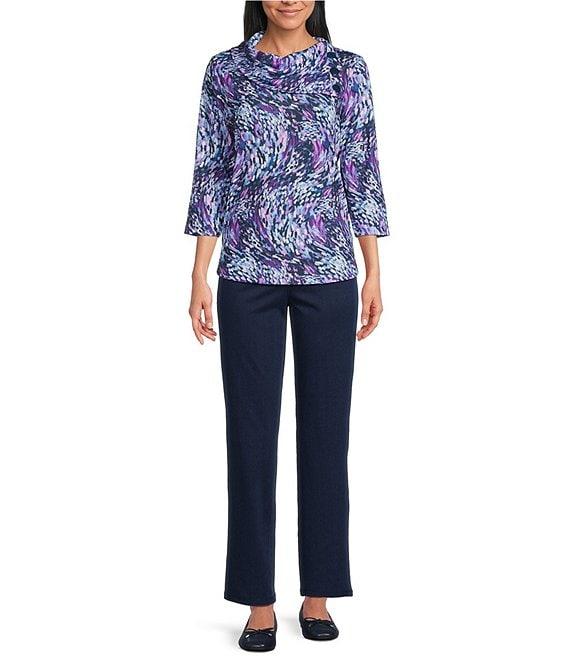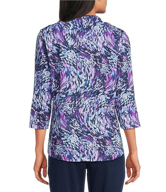 Allison Daley Petite Size Wavy Rain 3/4 Sleeve Split Cowl Neck Top