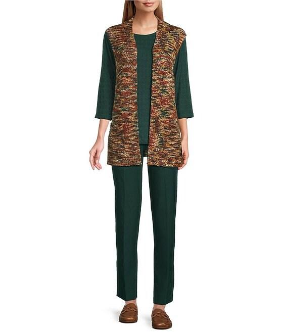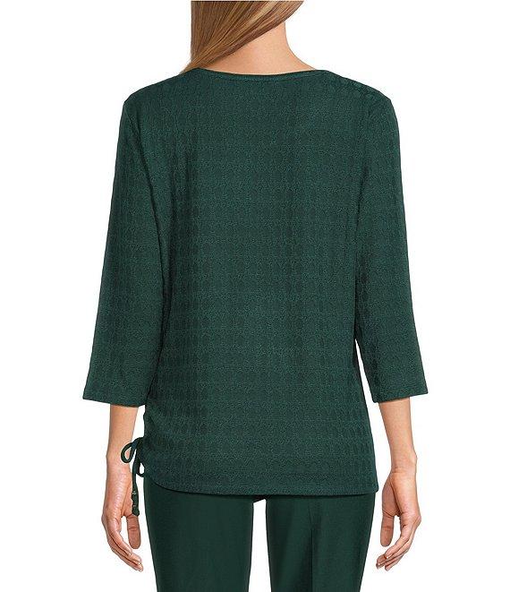 From Allison Daley, this top features: Pine grove jacquard Knit fabrication Crew neckline 3/4 sleeves Pullover construction Tie hem detail Polyester/spandex/nylon/rayon Machine wash/tumble dry Imported.