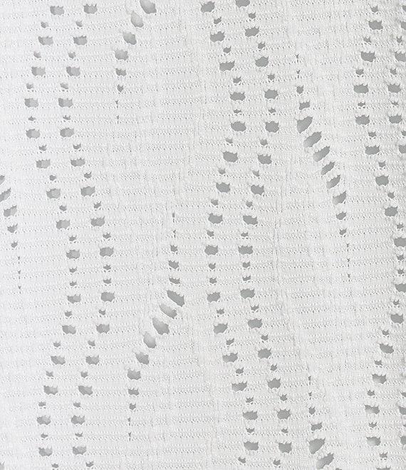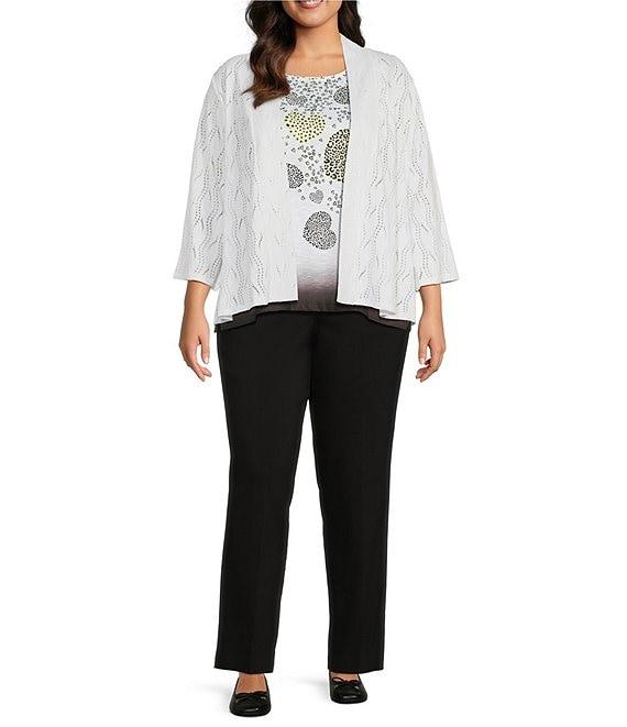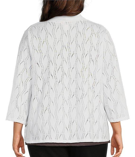 Allison Daley Plus Size 3/4 Sleeve Open-Front Wave Eyelet Knit Cardigan