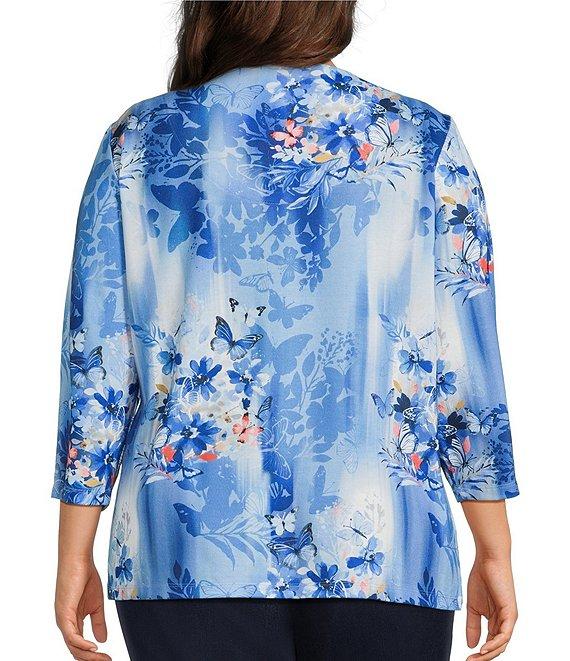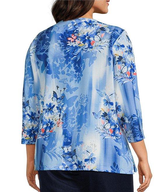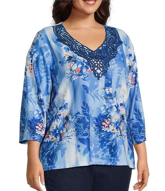 Allison Daley Plus Size 3/4 Sleeve V-Neck Beaded Applique Knit Top