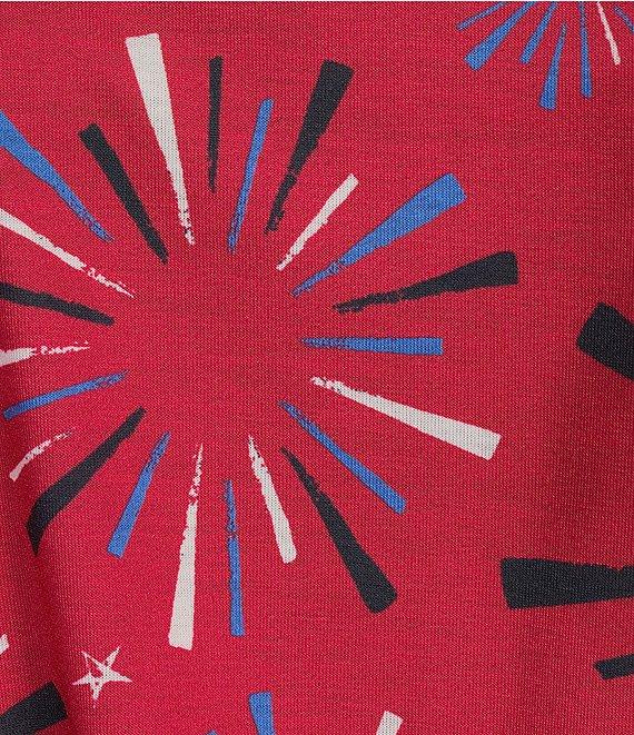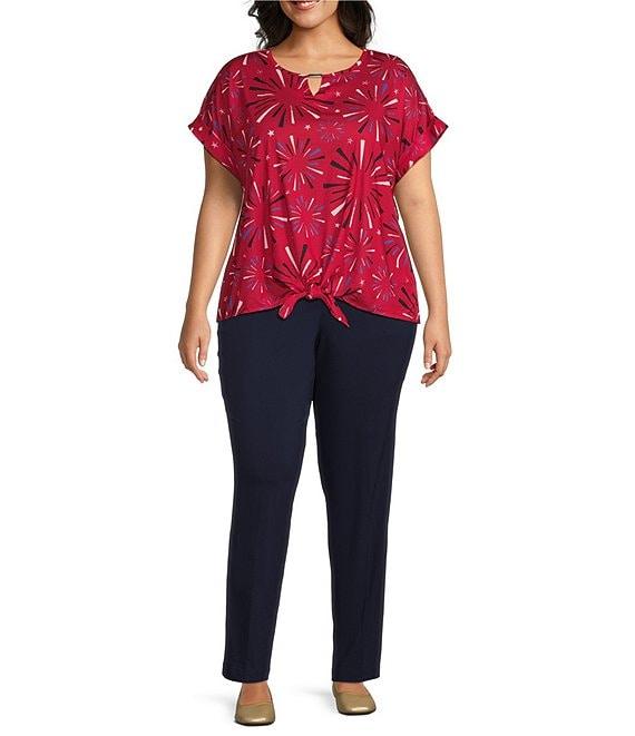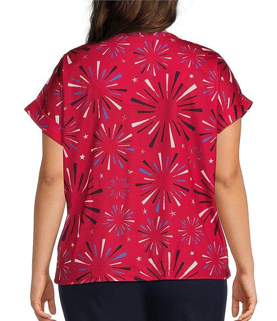 Allison Daley Plus Size Red Firework Print Short Sleeve Keyhole Neckline Knit Top