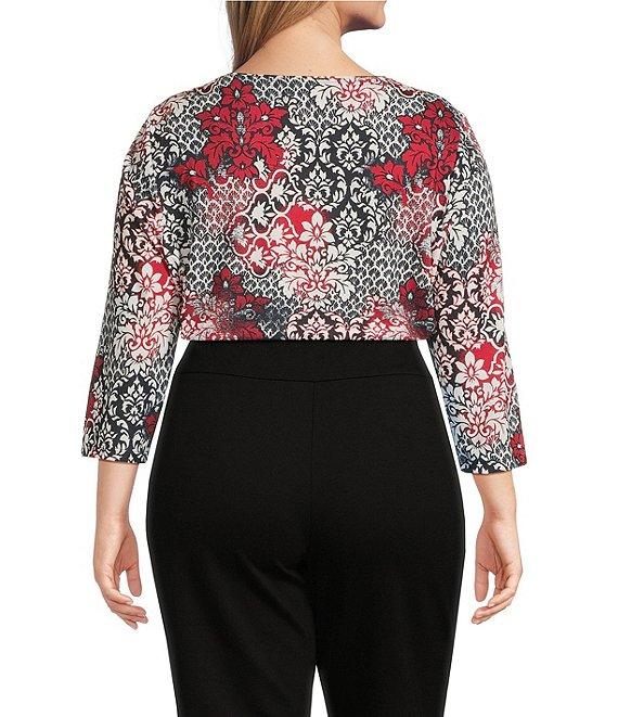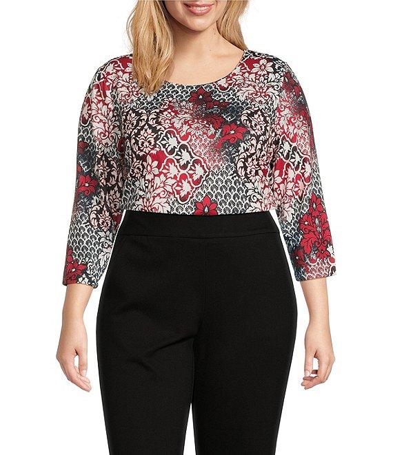 Allison Daley Plus Size Tango Red Embellished 3/4 Sleeve Crew Neck Knit Top