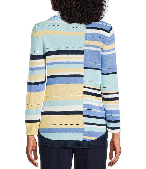 Allison Daley Provence Blue Stripe 3/4 Sleeve Crew Neck Curve Hem Sweater