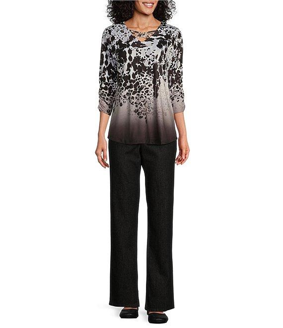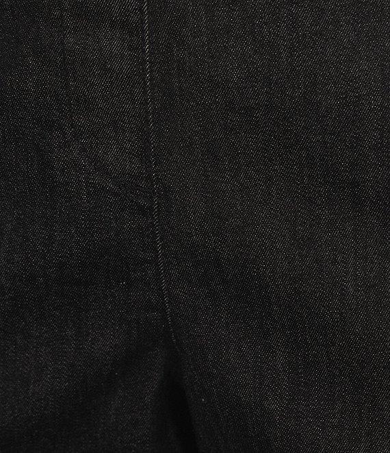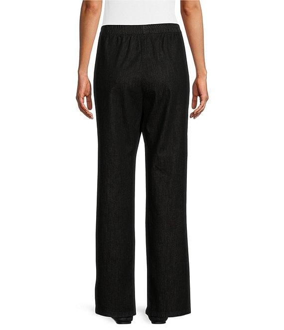From Allison Daley, these pants feature: stretch denim fabrication straight leg silhouette elastic waist with tummy panel two front pockets pull-on construction Approx. 30" regular; 28" short inseam cotton/spandex machine wash/tumble dry Imported.