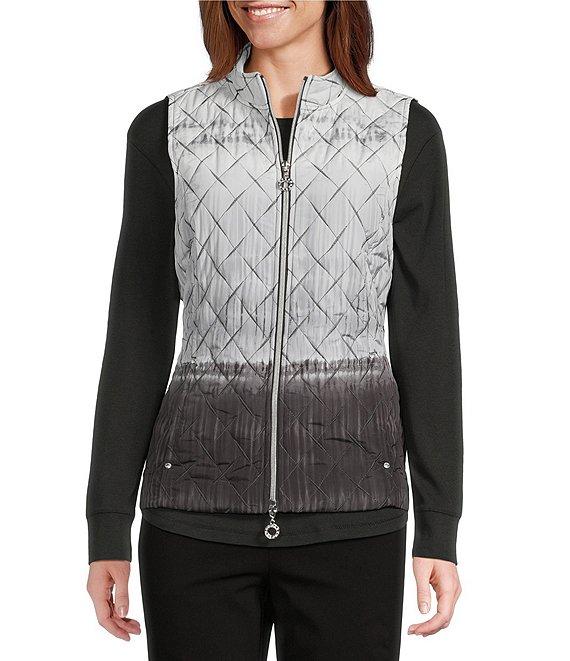 Allison Daley Tie-Dye Ombre Quilted Sleeveless Zip-Up Diamond Quilted Vest