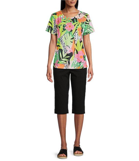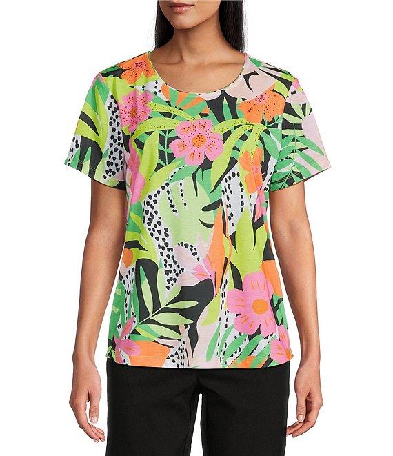 Allison Daley Tropical Calypso Holiday Short Sleeve Crew Neck Knit Top