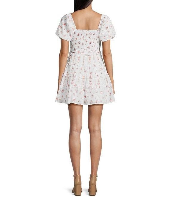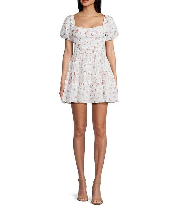 Allison & Kelly Ditsy Floral Print Sweetheart Neck Short Puff Sleeve Corset Dress