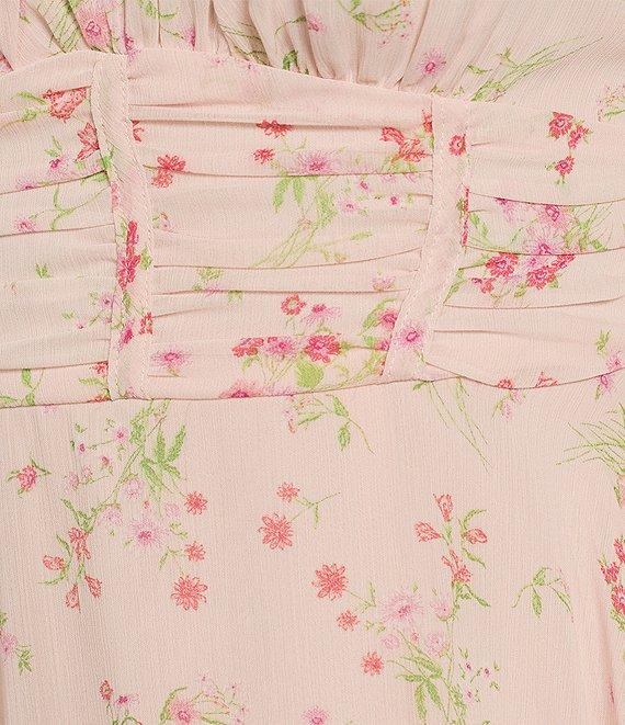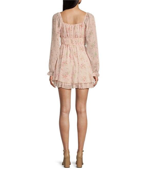 Allison & Kelly Floral Print Sweetheart Neck Long Sleeve Corset Bodice Dress