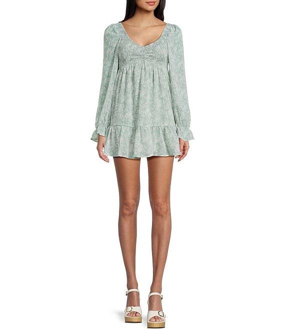 Allison & Kelly Floral Print V-Neck Long Sleeve Smocked Tiered Babydoll Dress