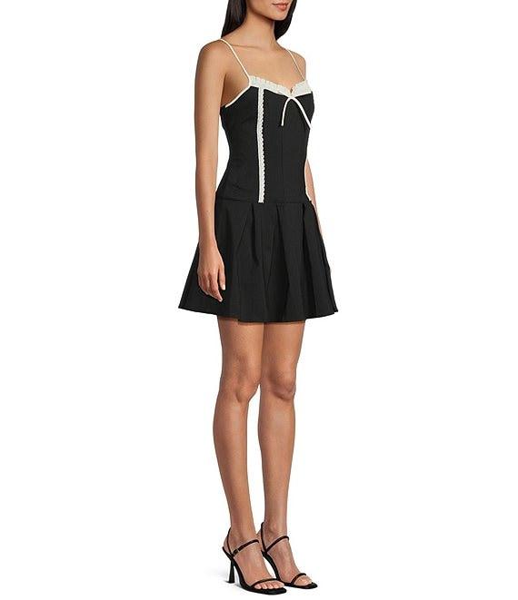 From Allison & Kelly, this dress features:Lace trimSweetheart neckSleevelessAdjustable spaghetti strapsDrop-waist silhouettePullover styling34" lengthSelf of rayon/nylon/spandex; contrast of cotton/nylon/spandexMachine wash/line dryImported.