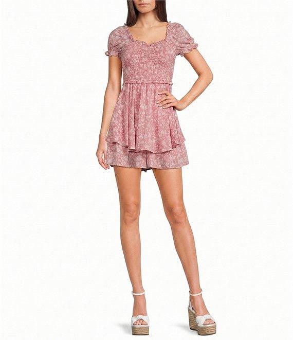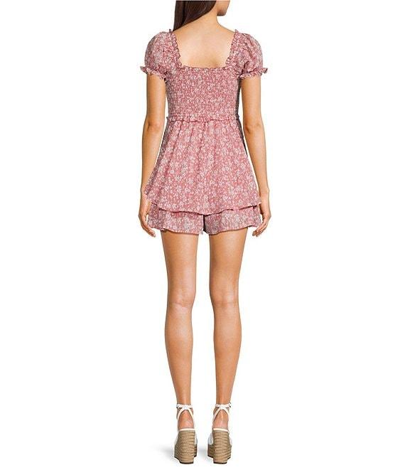 Allison & Kelly Printed Square Neck Short Puff Sleeve Pinch Front Romper