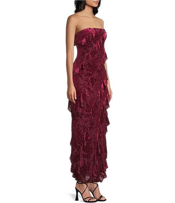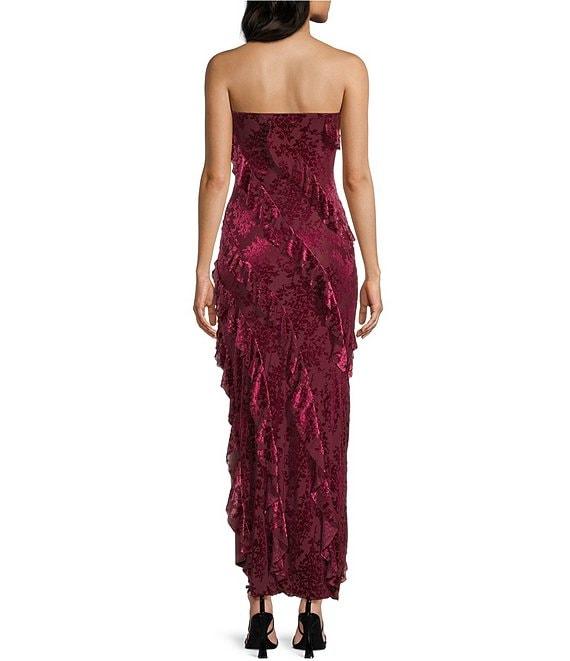 Allison & Kelly Strapless Burnout Asymmetrical Ruffle Dress