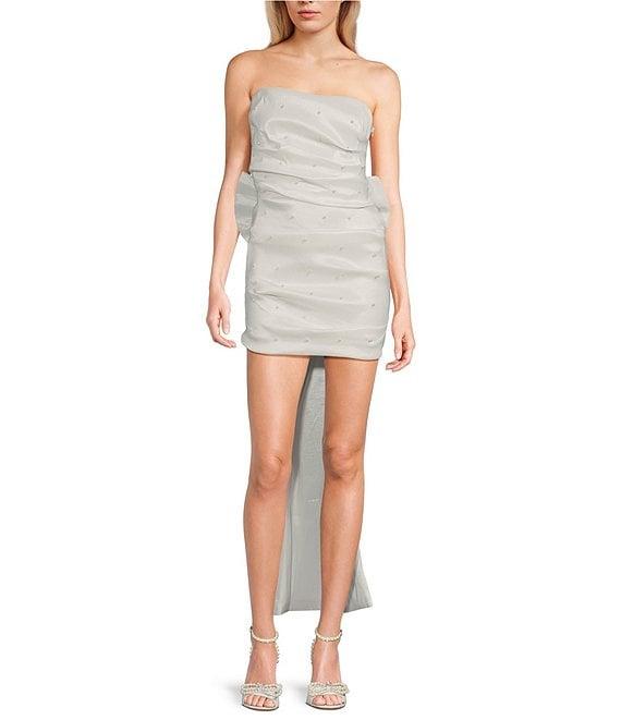 Allison & Kelly Strapless Pearl Taffeta Bow Back Mini Train Dress
